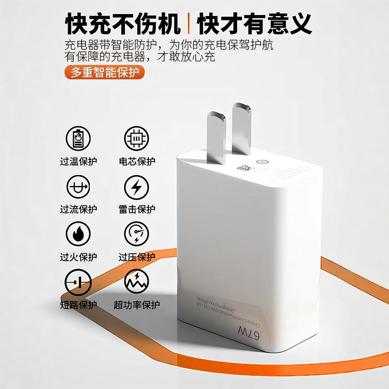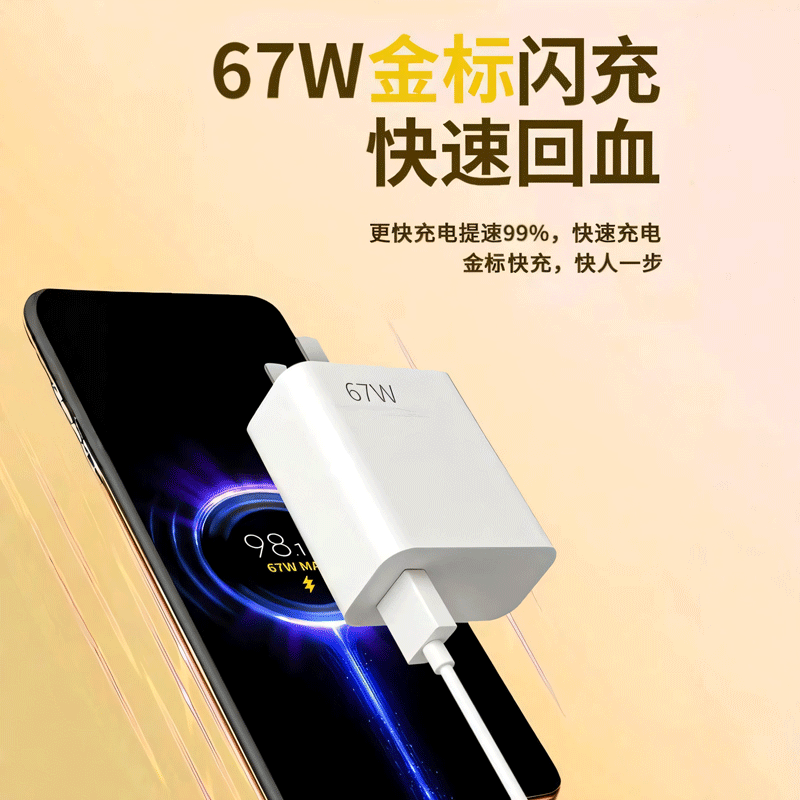 【3C认证快充】67W金标快充充电器头适用于小米14/13/pro红米k70平板60原120W闪充6A数据线一套装typec手机口