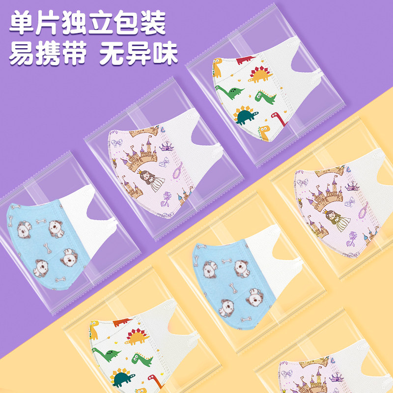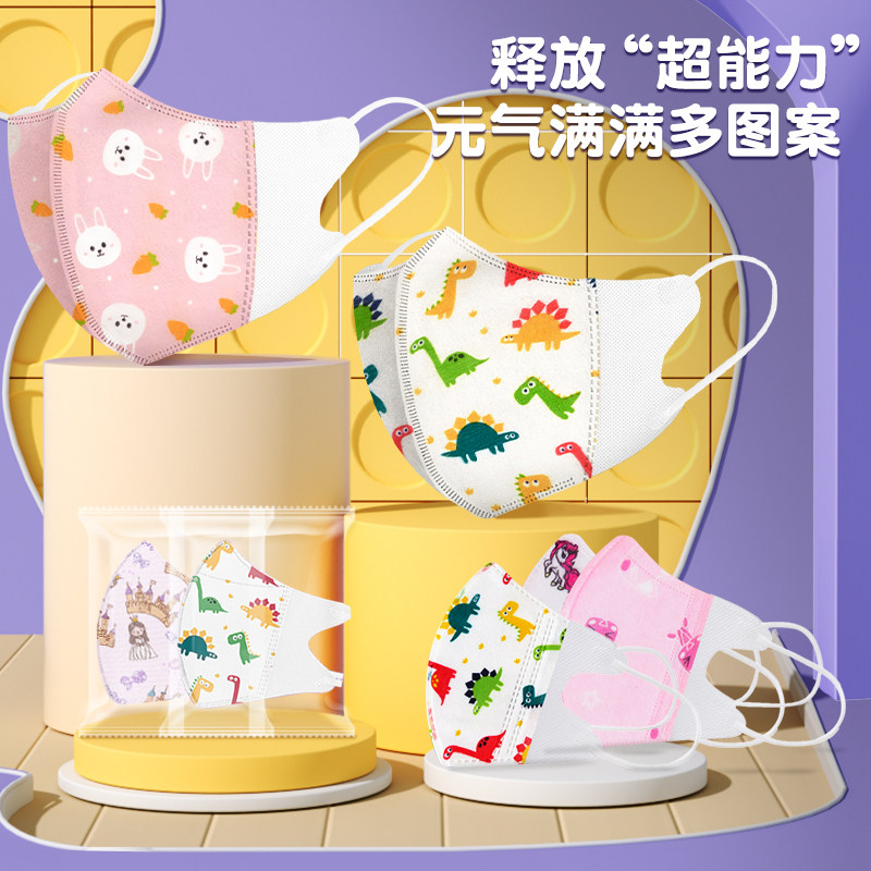 儿童KN95口罩4D立体学生卡通可爱小学生3到12岁四层防护独立包装