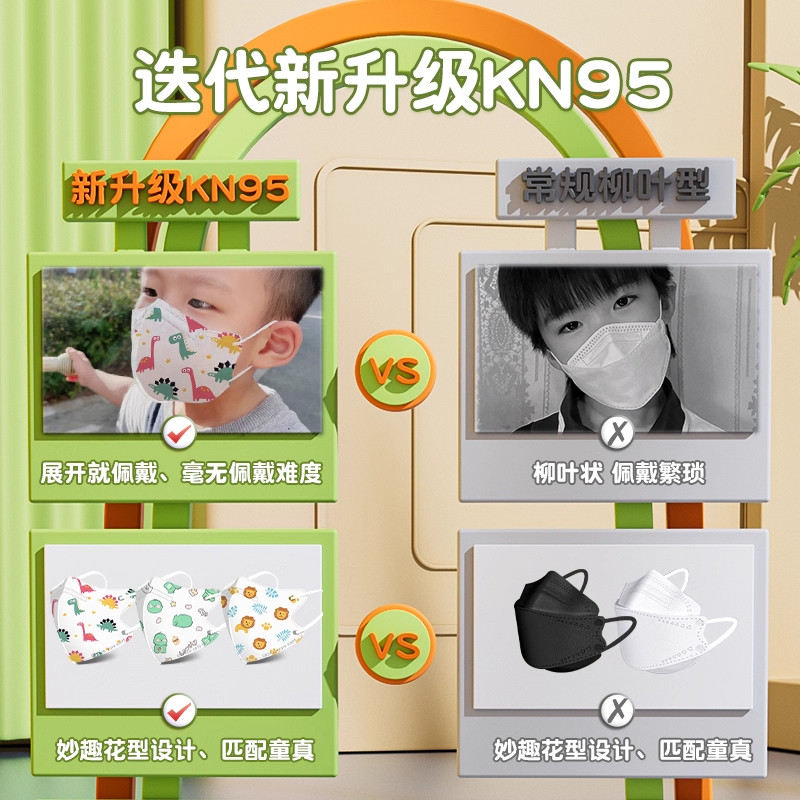 儿童KN95口罩4D立体学生卡通可爱小学生3到12岁四层防护独立包装
