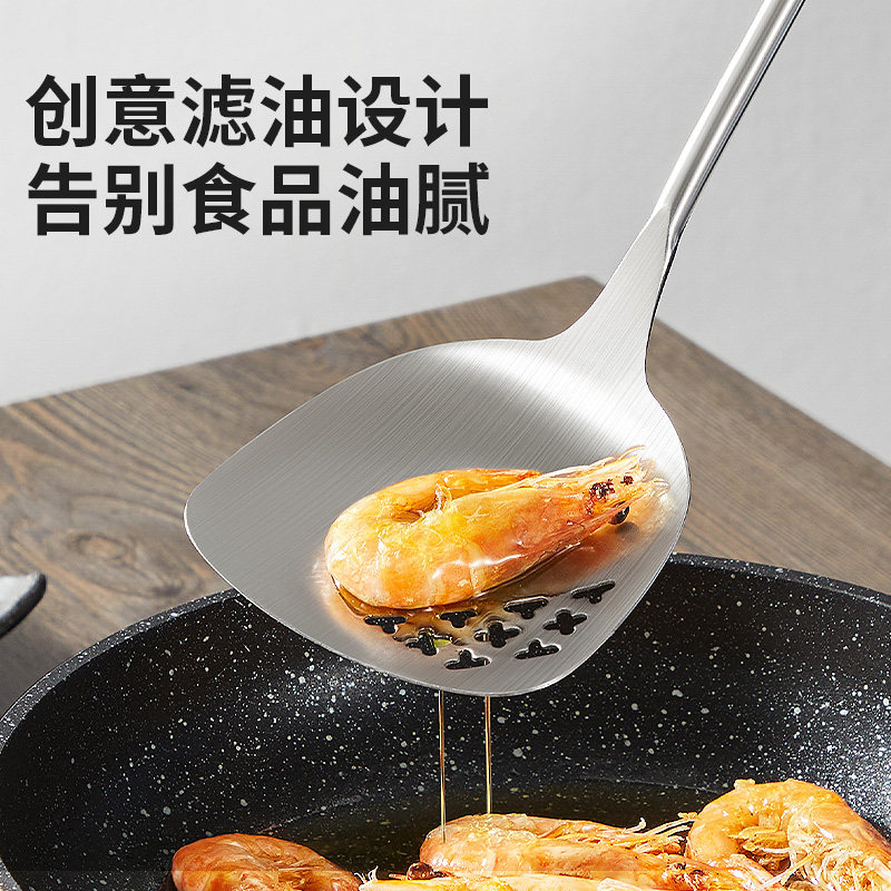 王麻子不锈钢锅铲家用三件套厨房必备炒菜铲子汤勺子厨具官方正品
