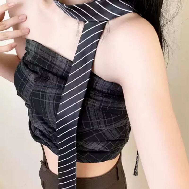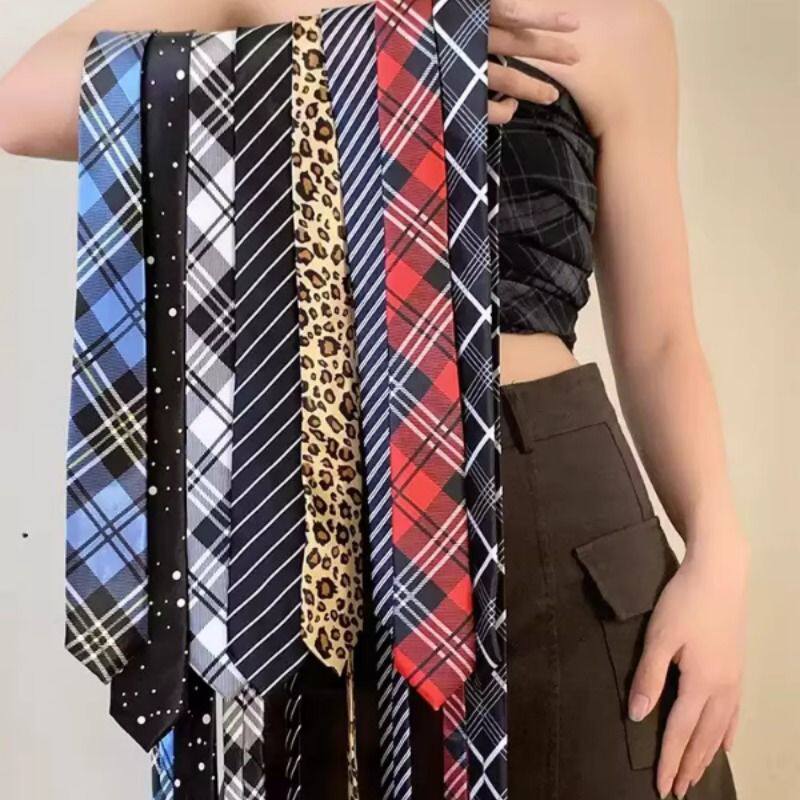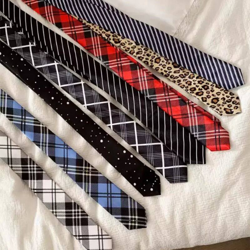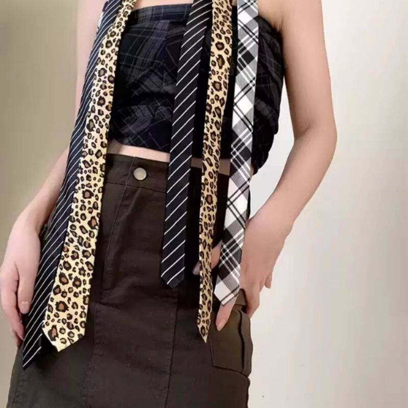日系窄长条豹纹领带女复古领巾感辣妹丝巾配饰条纹黑白红色黑色