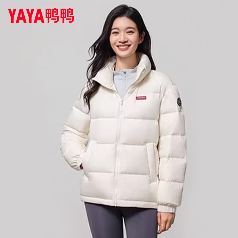 【鞠婧祎同款】鸭鸭2025年冬新款百搭短款女士纯色立领羽绒服外套