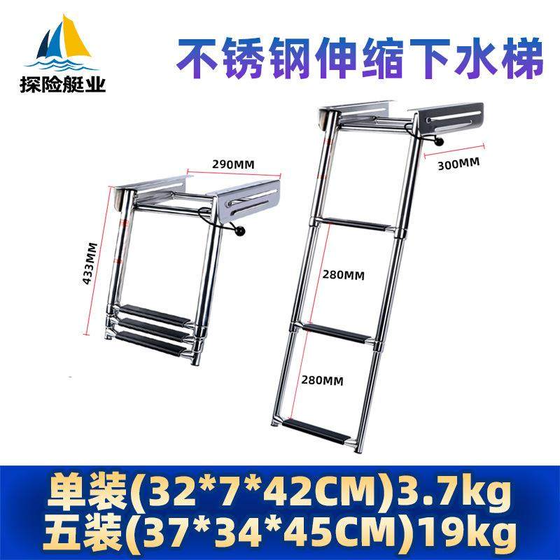 探险船艇船用梯子不锈钢伸缩三节舷梯防锈船用五金游艇配件登船梯
