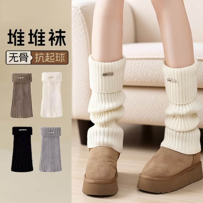 白色袜套针织女款秋冬季保暖腿套雪地靴堆堆袜冬季小腿袜子加厚款