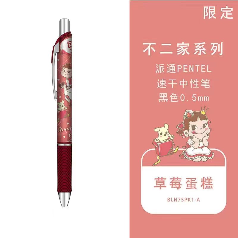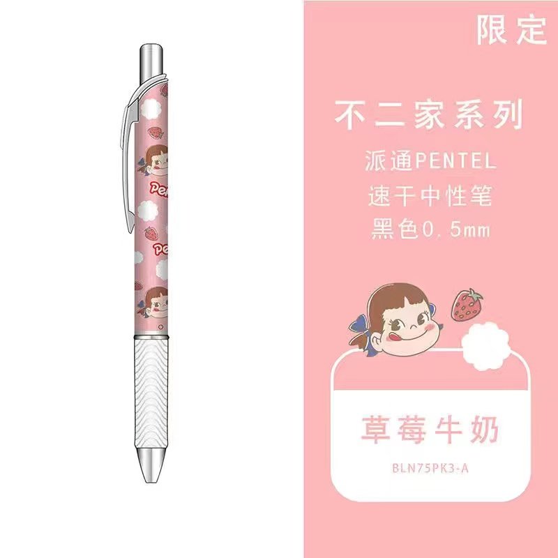 日本Pentel派通不二家限定中性笔 PEKQ联名款牛奶妹棒棒糖女孩BLN75速干按动水笔学生考试黑笔书写顺滑进口笔