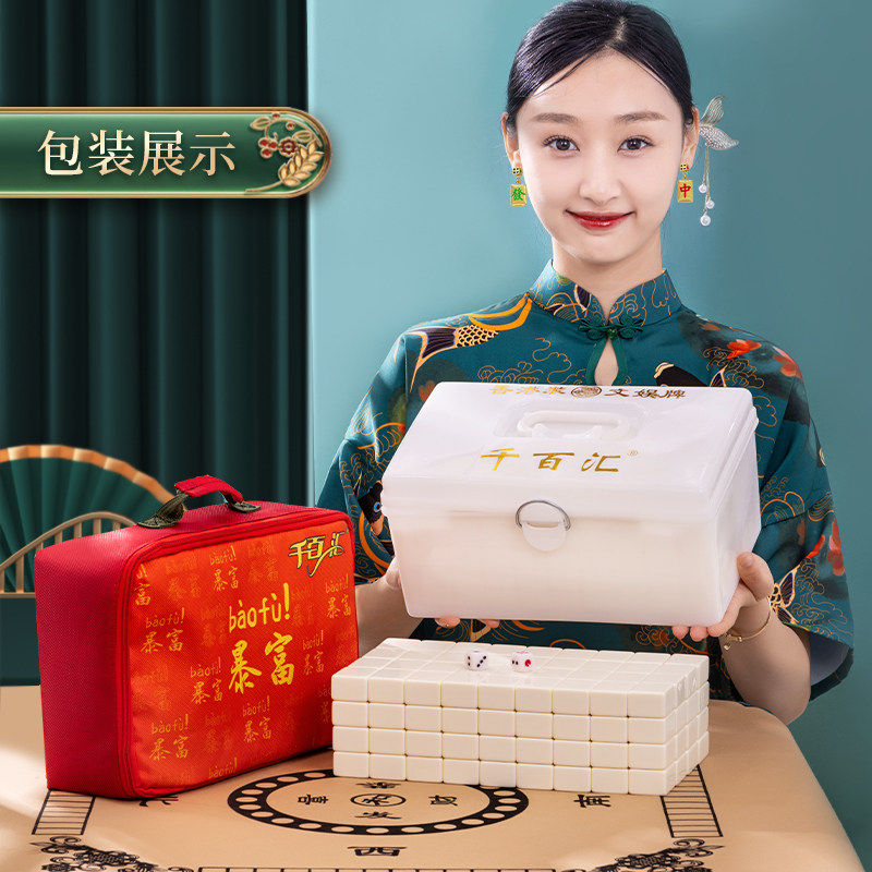 家用大号象牙色精品麻将牌 一级纯色麻雀全套含收纳袋装