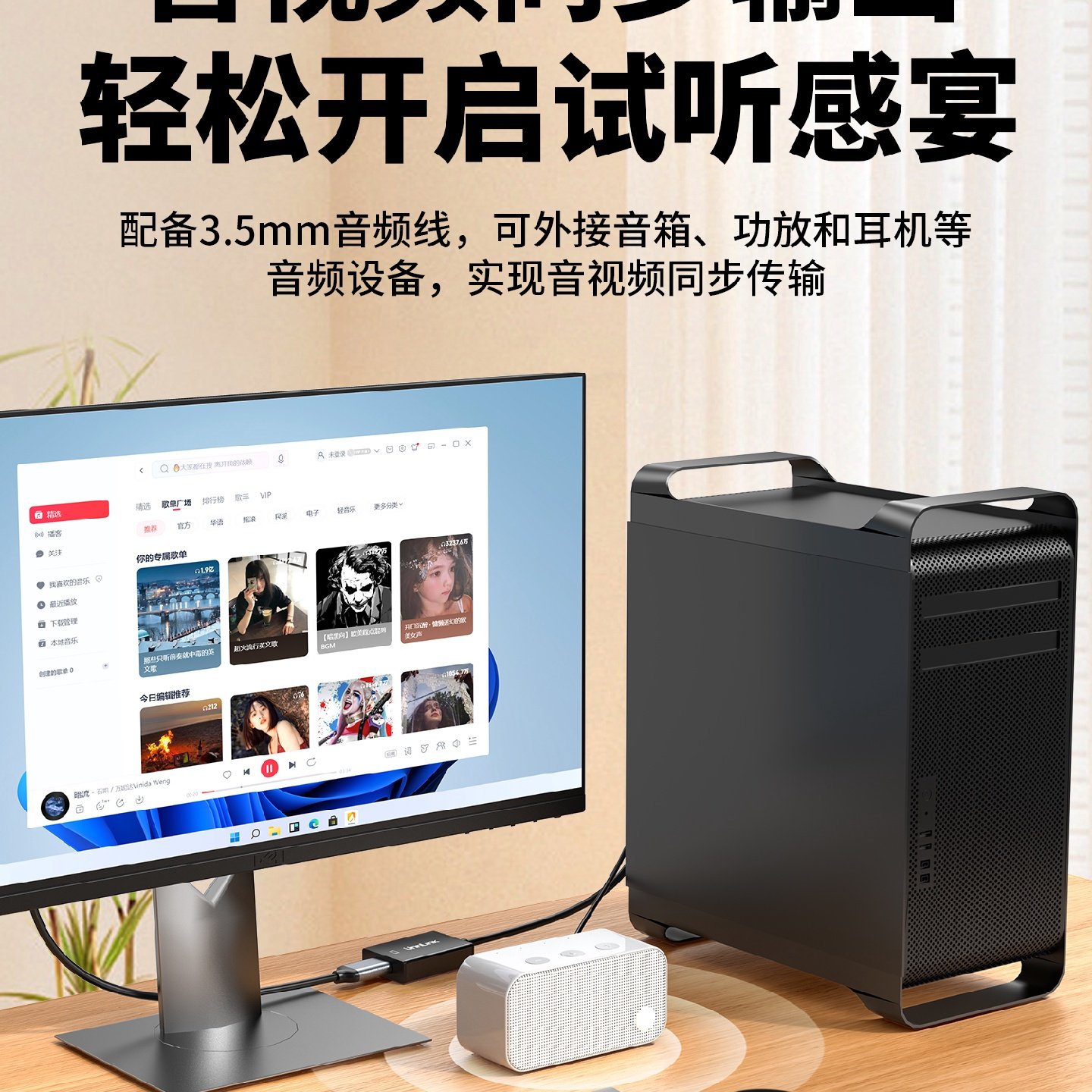 优联VGA转HDMI转换头带音频供电连显示器电视投影仪vga转hdmi母头