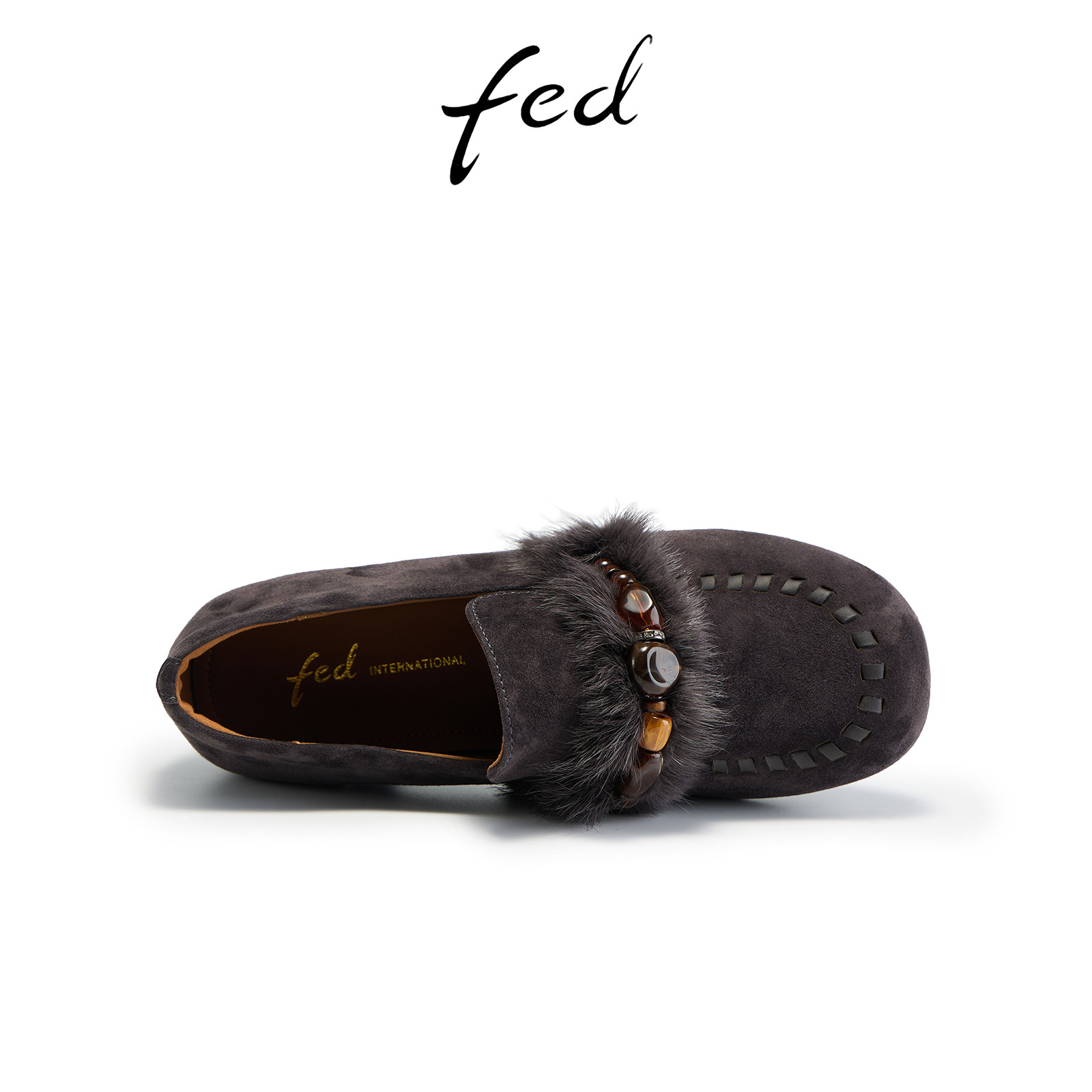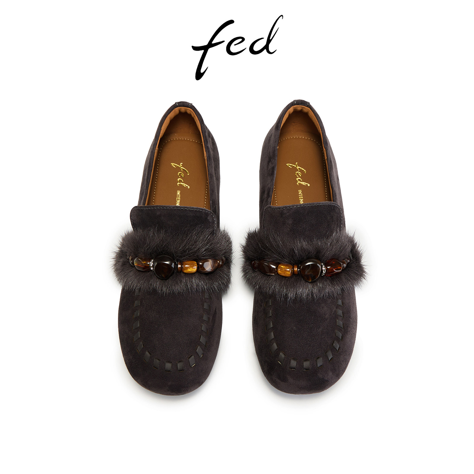 fed绒面乐福鞋春季新款女鞋平底单鞋舒适通勤鞋女款S1018-ZFA361