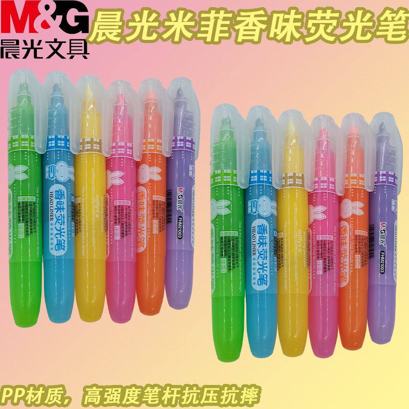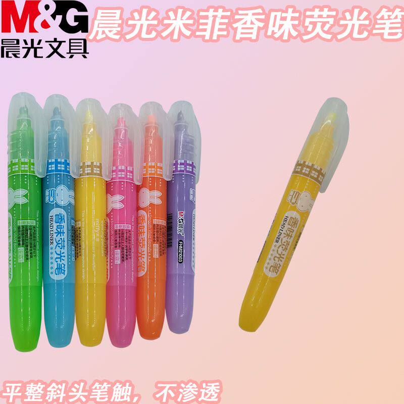 晨光米菲单头荧光笔不易褪色FHM21003扁平头快干多彩荧光笔做记号