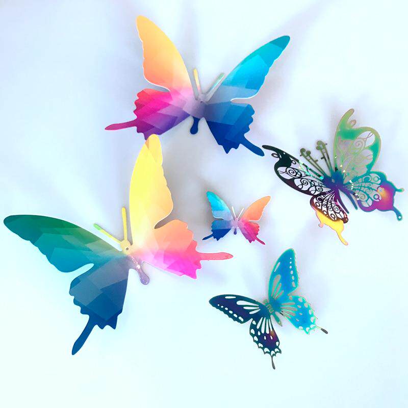 彩虹色蝴蝶墙贴不锈钢自由折叠立体起飞状壁饰现代家居卧室装饰品