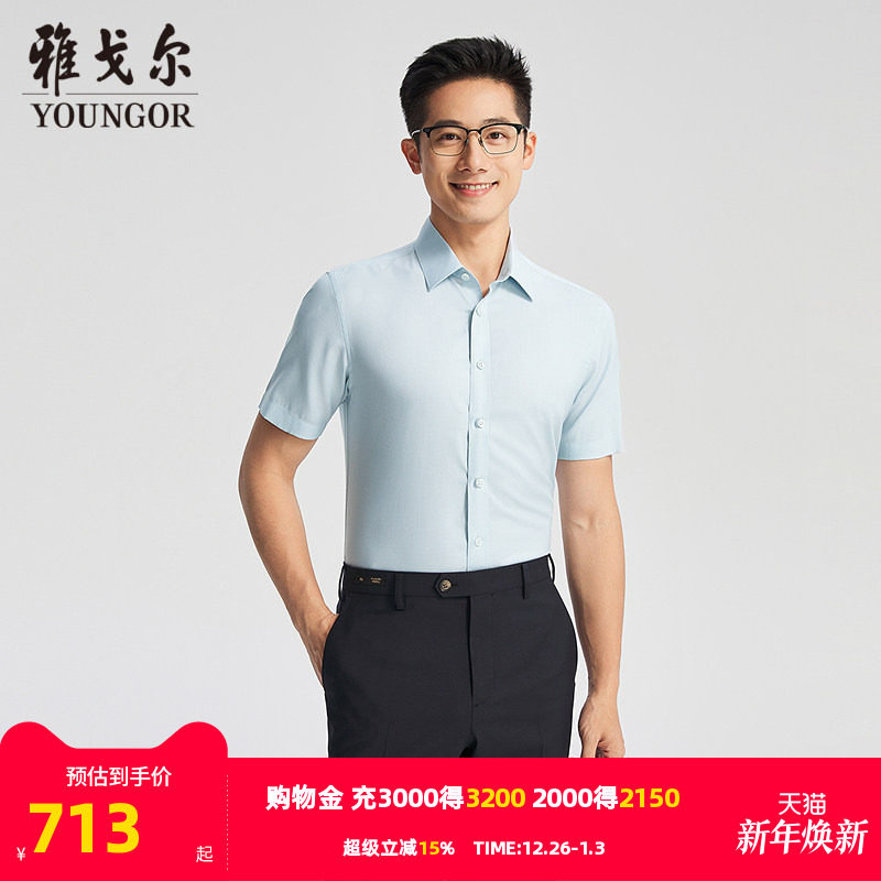 【商场同款】雅戈尔男士短袖衬衫夏季新款官方商务休闲短袖衬衫男