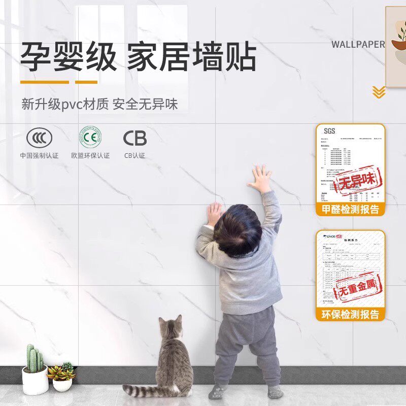墙贴自粘仿瓷砖大理石墙纸防水防潮家用客厅墙面翻新墙裙护墙板