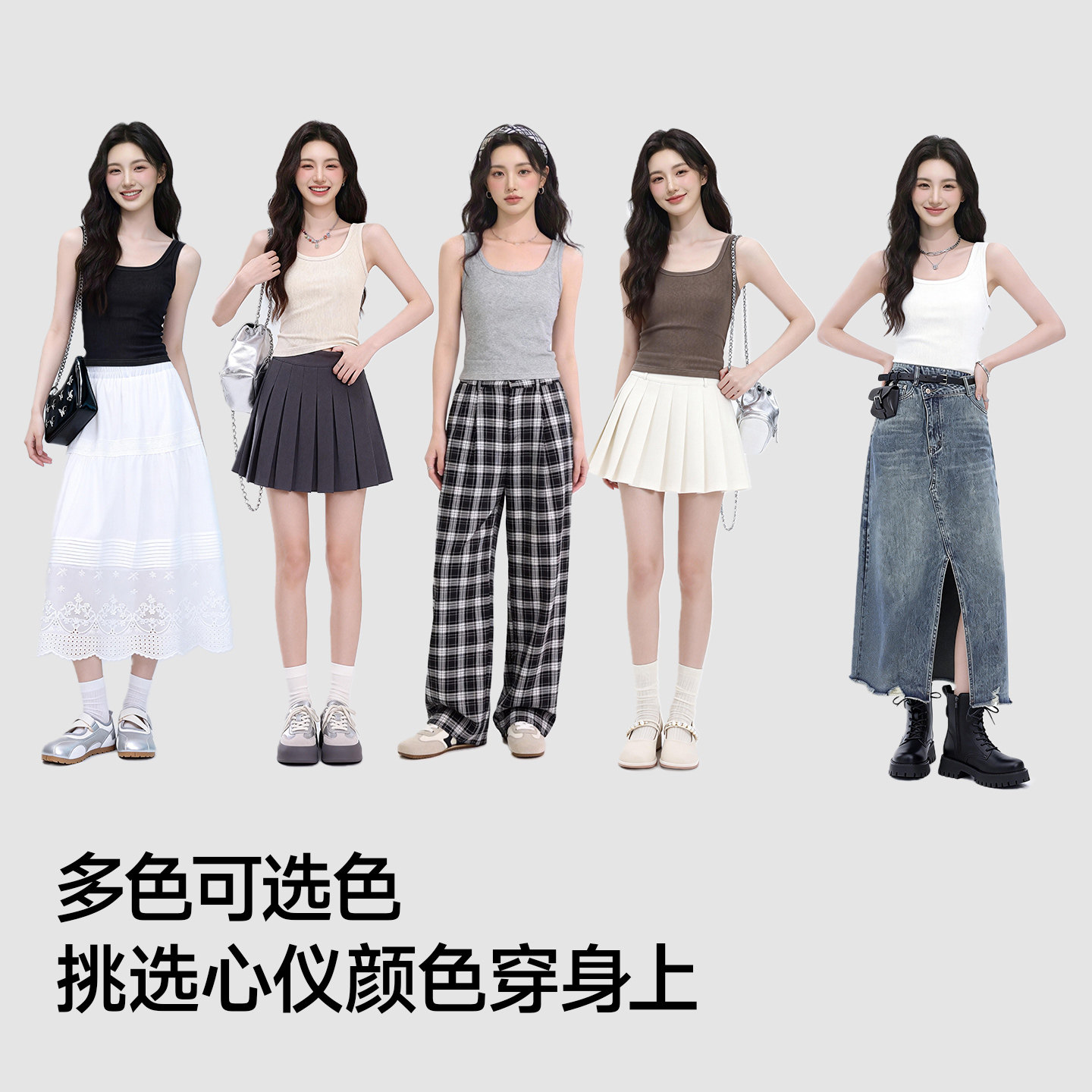 莫代尔吊带背心女夏薄款纯色无袖打底衫修身百搭简约内搭U领上衣