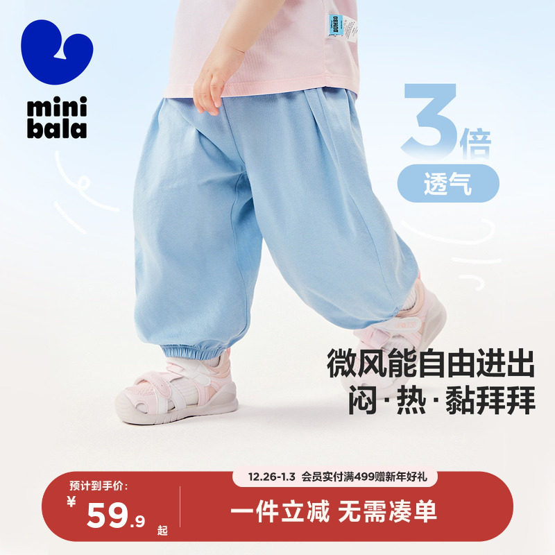 【纯棉防蚊裤】迷你巴拉巴拉男女童裤子夏薄儿童速干婴儿宝宝长裤