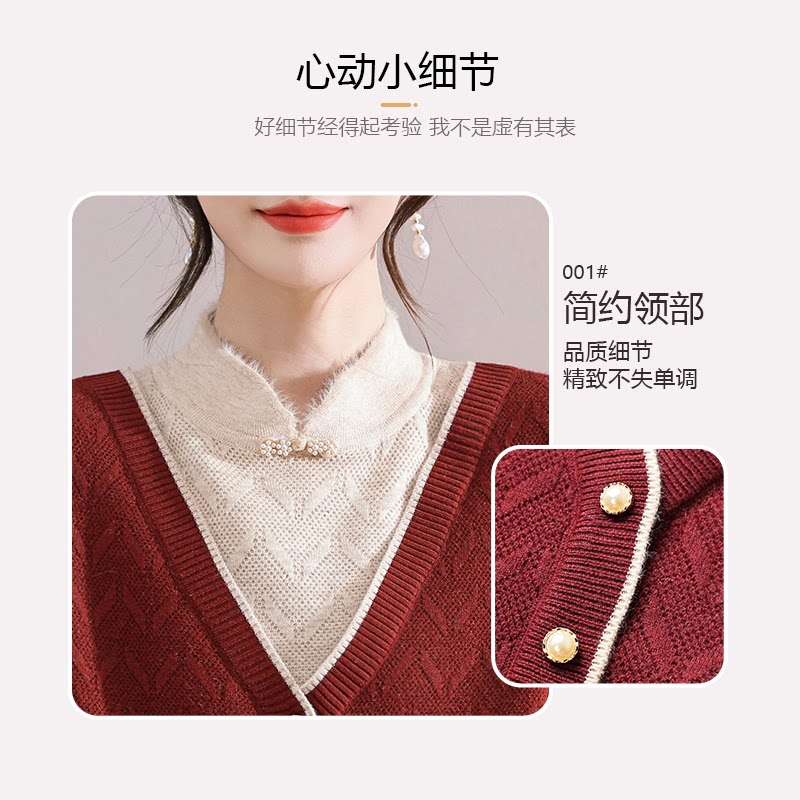 【李佳琦直播间】妍影妈妈冬装假两件盘扣加绒针织衫