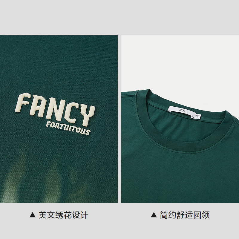 HLA/海澜之家曾舜晞同款纯棉圆领宽松短袖T恤时尚舒适渐变上衣男