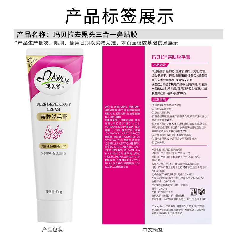 mayllie/玛贝拉亲肤脱毛膏100g女学生温和无痛脱腋下男腿毛比基尼