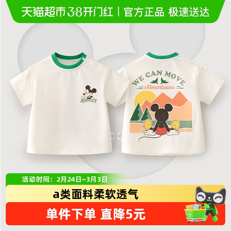 迪士尼儿童短袖t恤宝宝夏装透气男女童衣服白色上衣童装2025新款