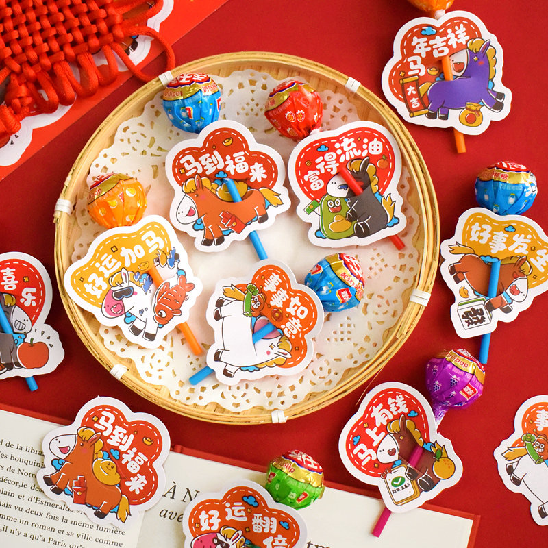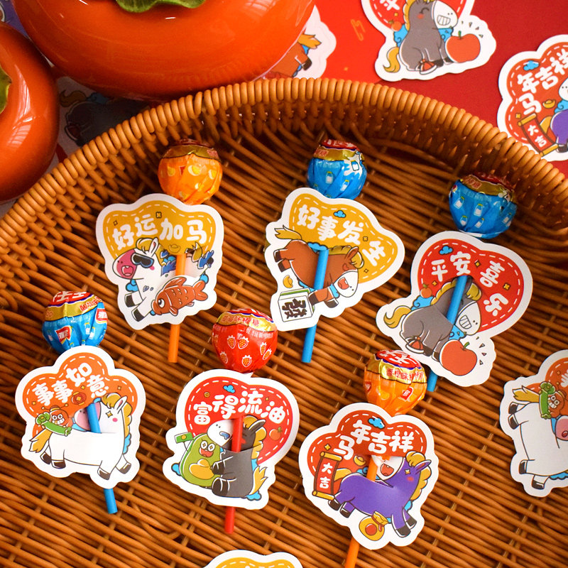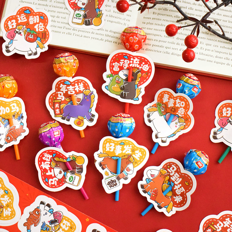 快乐加马开学新年祝福棒棒糖插卡幼儿园儿童小学生马到福来礼物培训班伴手礼游园会糖果可爱卡通装饰墙贺卡片