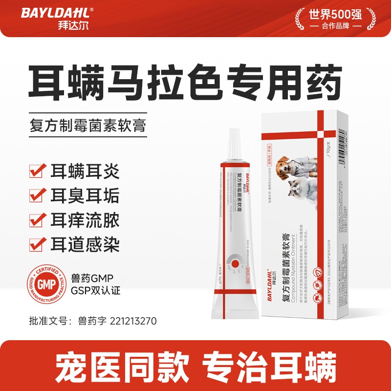 拜达尔猫咪耳螨专用药狗用复方制霉菌素软膏洗耳液宠物马拉色耳药