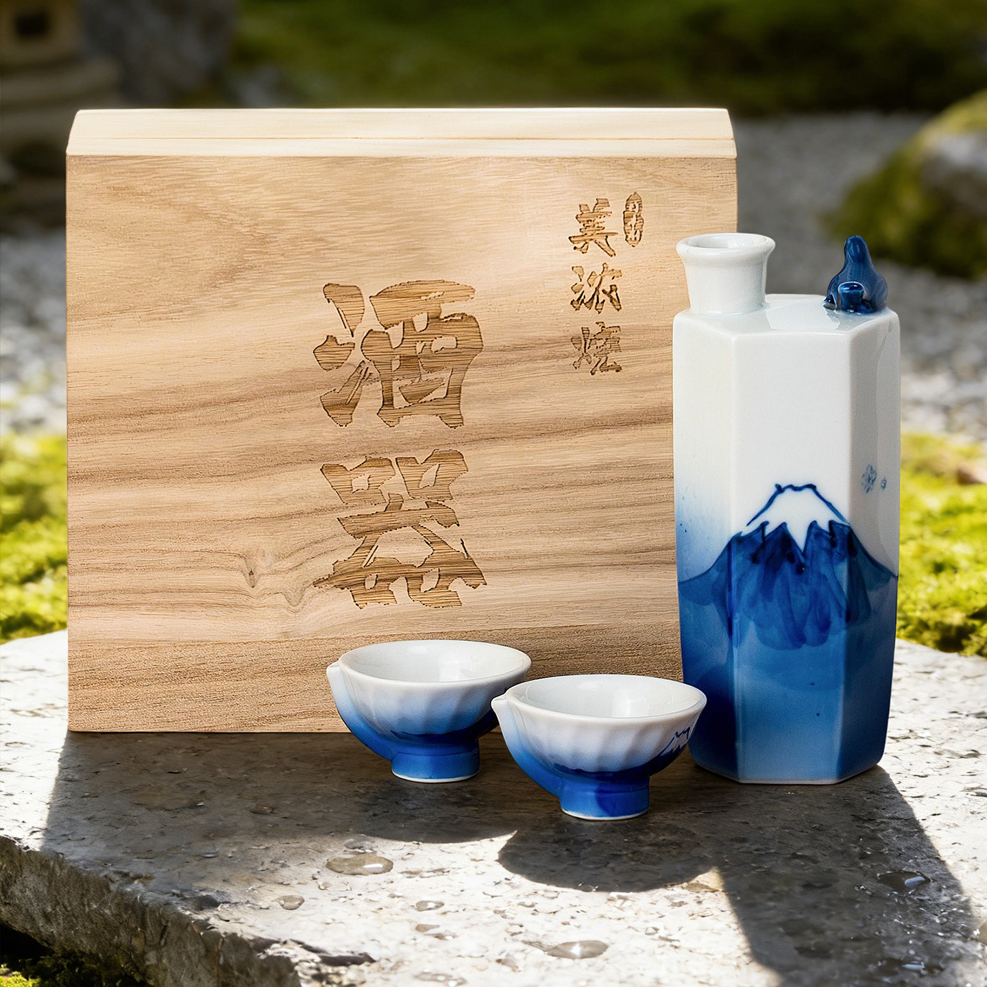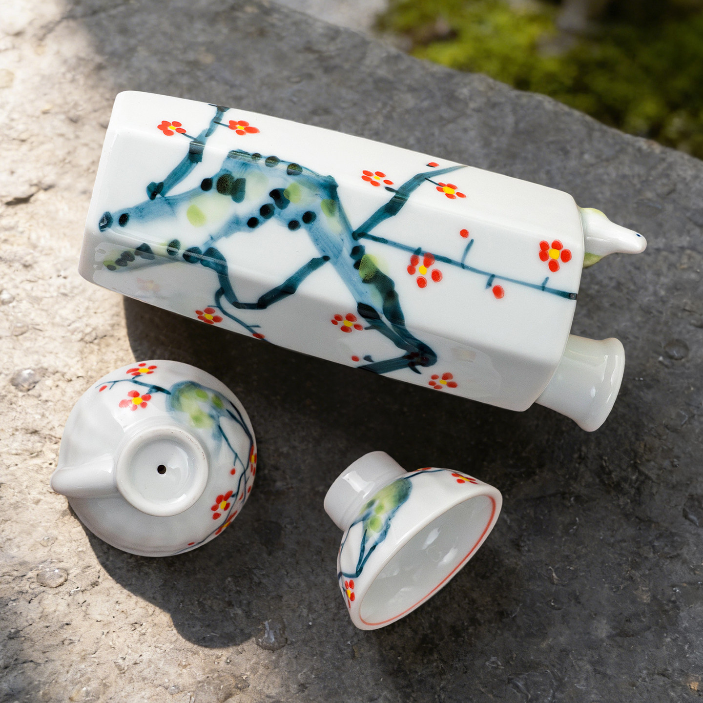 美浓烧日本进口手绘鸟趣酒具三件套陶瓷清酒壶白酒酒杯套件