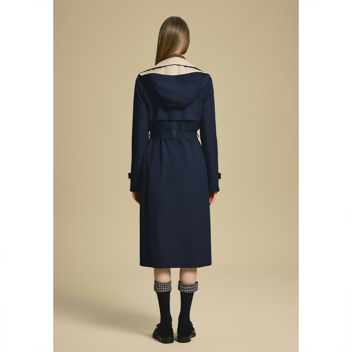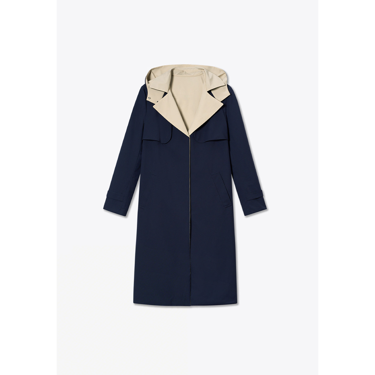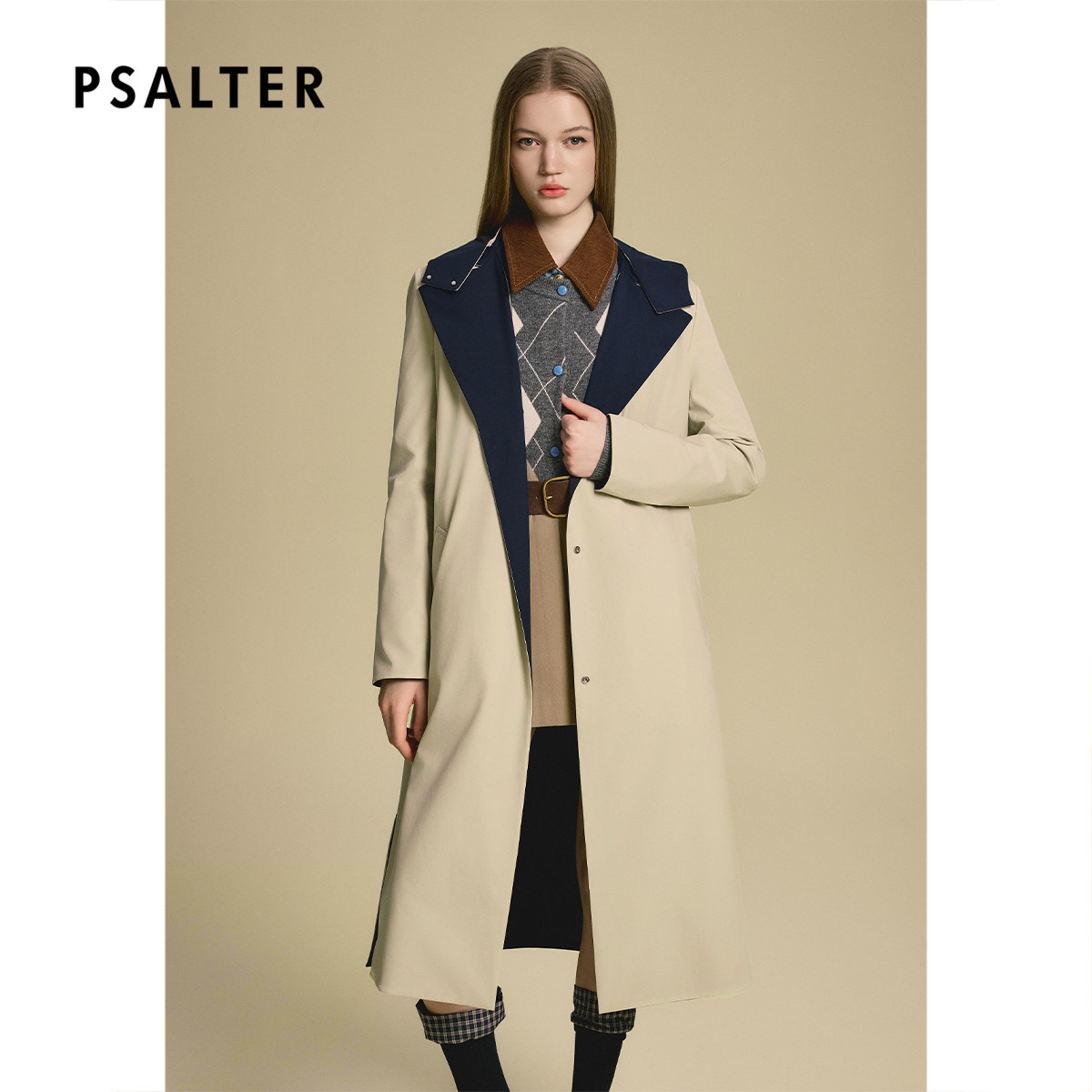 PSALTER诗篇藏蓝双面穿撞色翻驳领通勤休闲风衣外套2025秋款