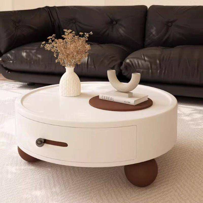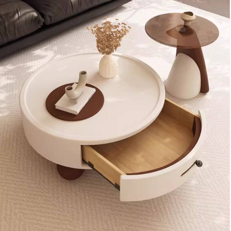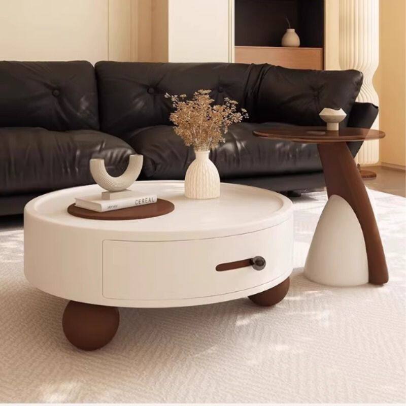 中古奶油风胖丁茶几客厅家用2025新款高级感胡桃木艺术圆形茶几桌