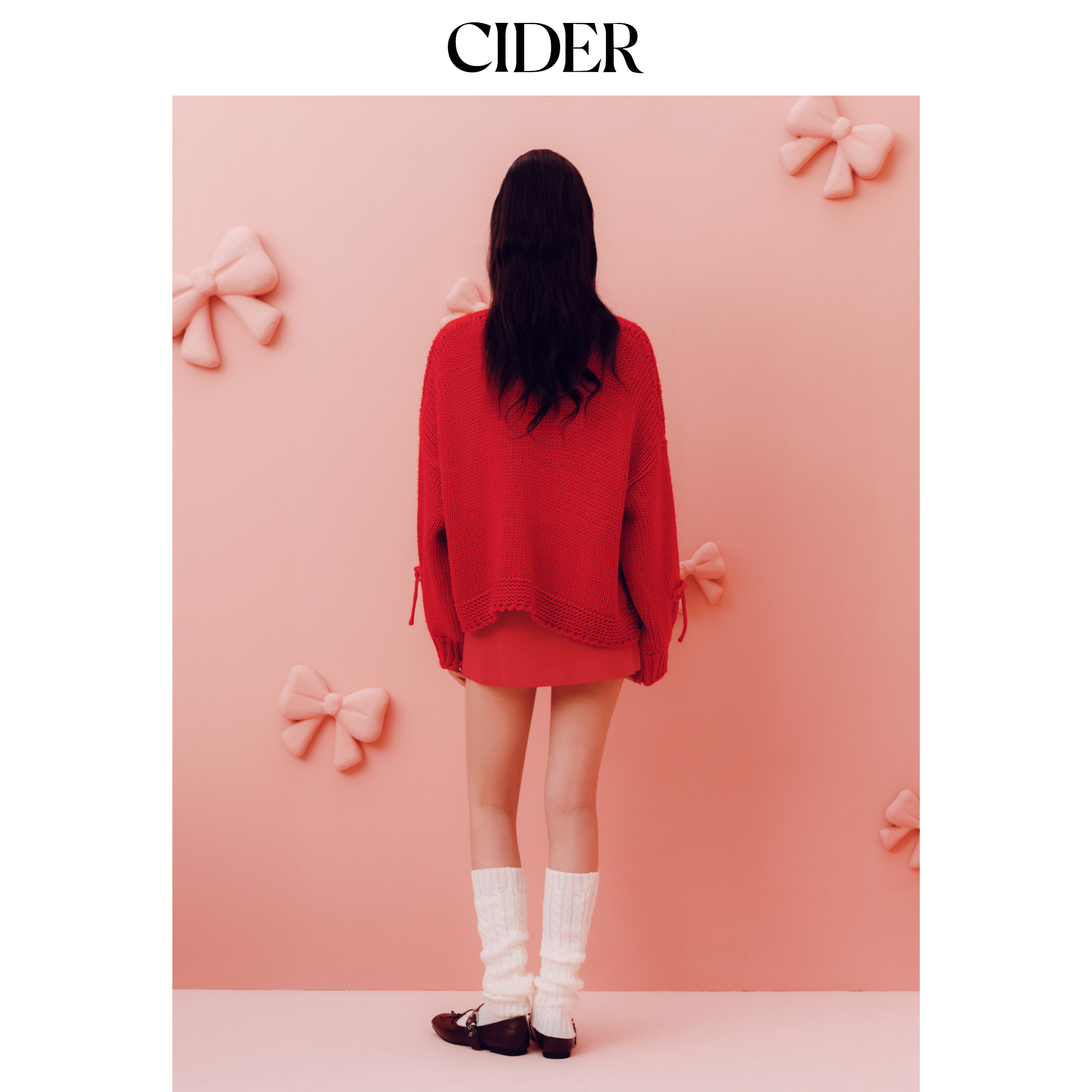 CIDER新年穿搭中腰蝴蝶结短裙紧身迷你红色a字半身裙115161967