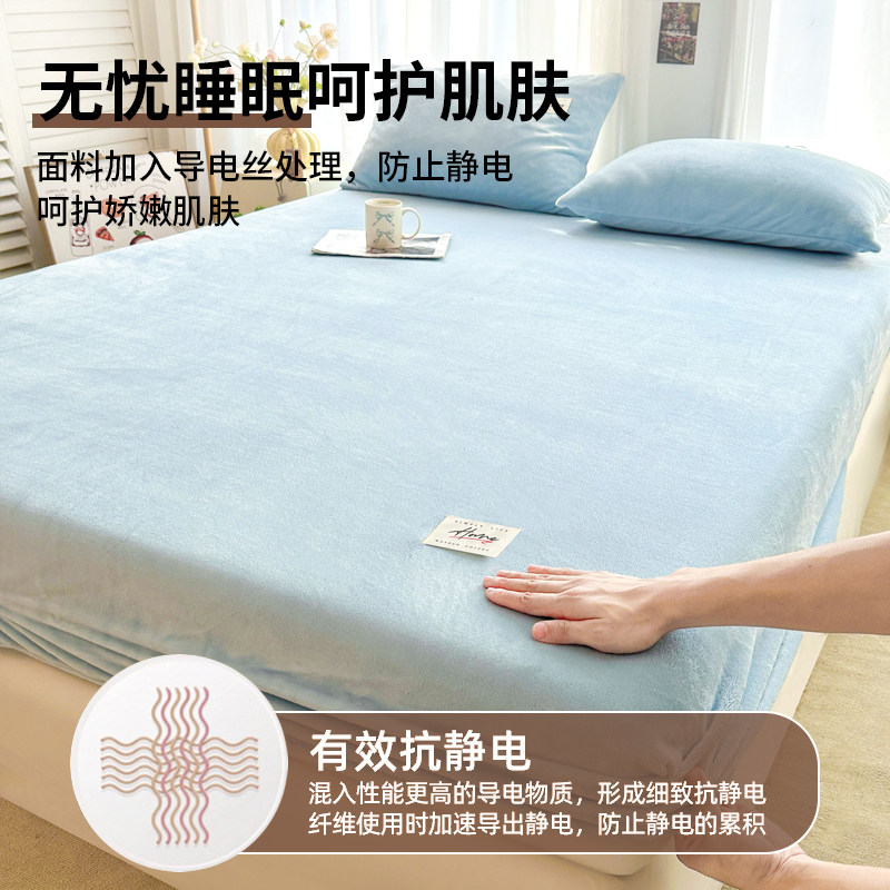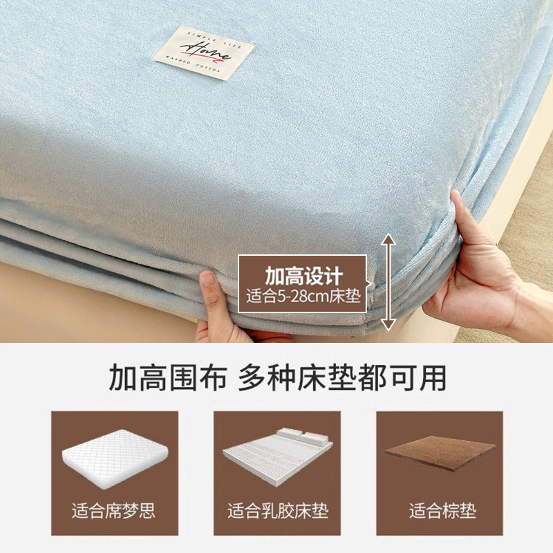 加绒加厚牛奶绒床笠 高弹松紧紧扣防滑