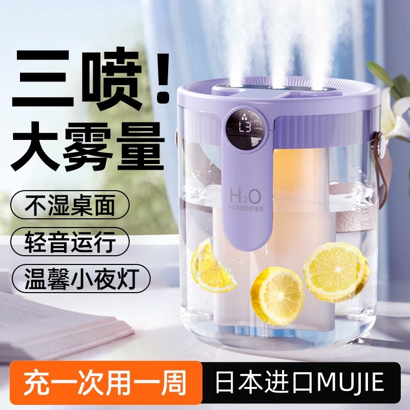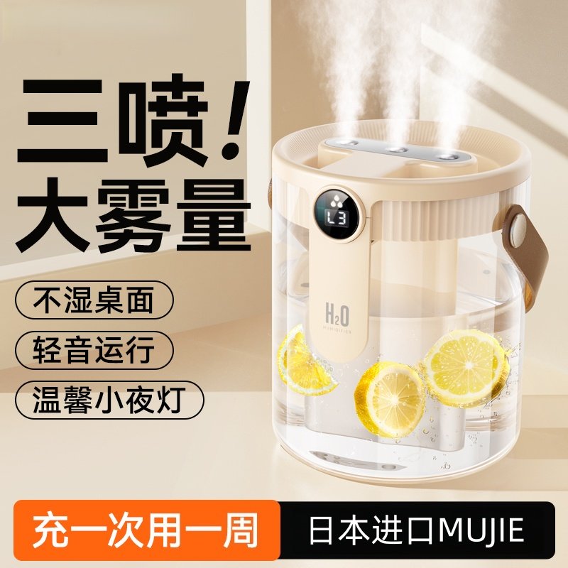 日本进口MUJIE加湿器2025新款小型三喷大雾量桌面家用补水保湿器