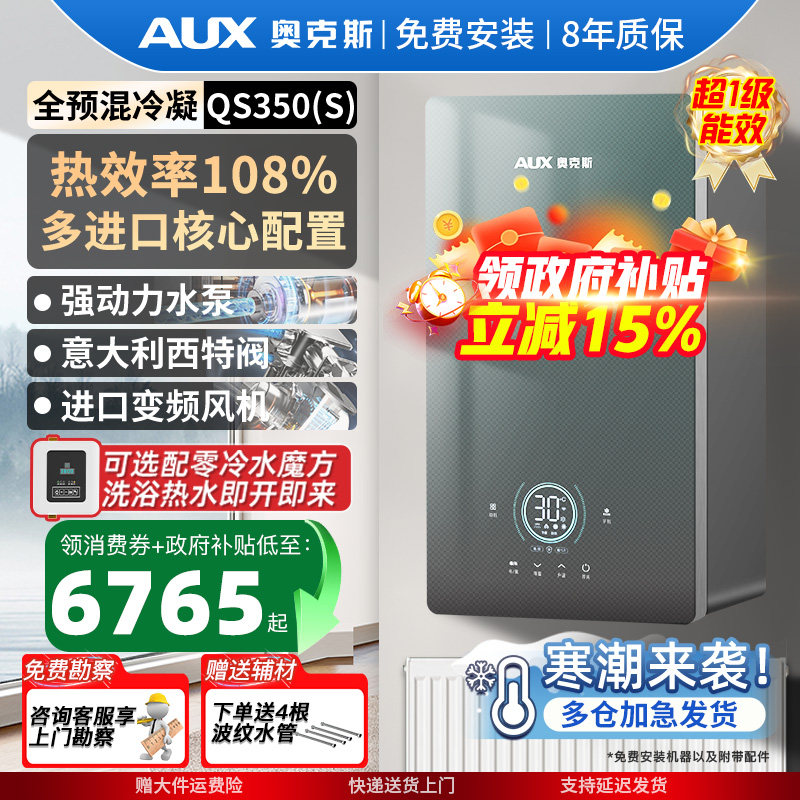 奥克斯全预混燃气壁挂炉采暖热水两用地暖锅炉家用采暖炉一级能效