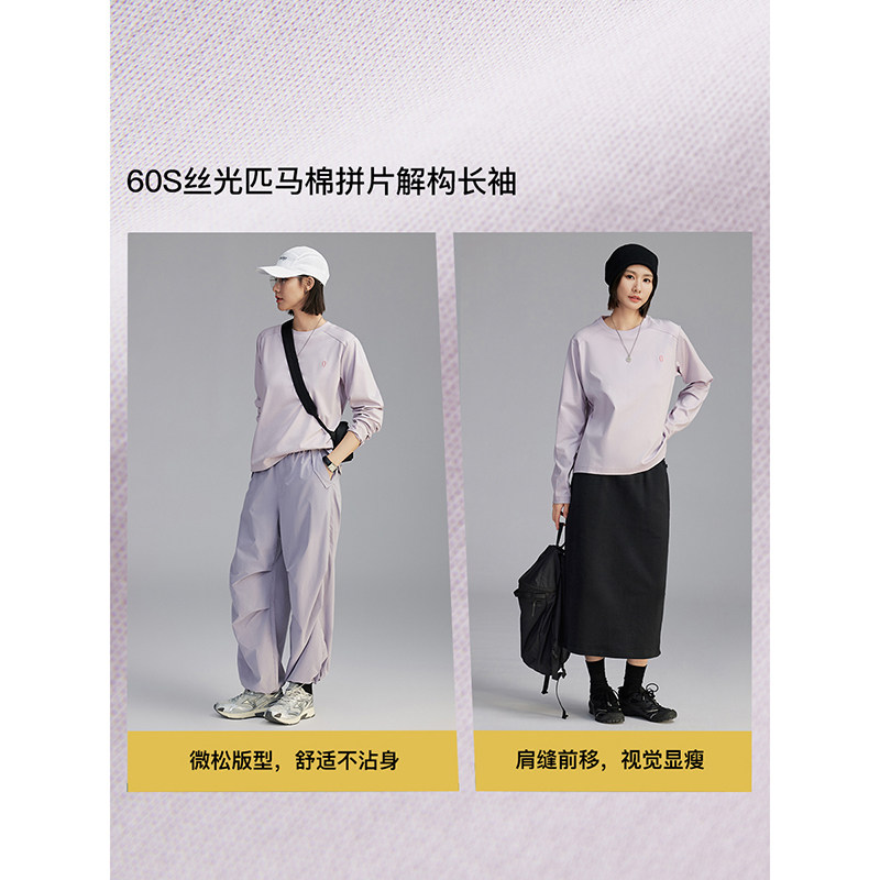 云上生活【匹马棉T恤】60S丝光匹马棉拼片解构长袖T恤春秋上衣