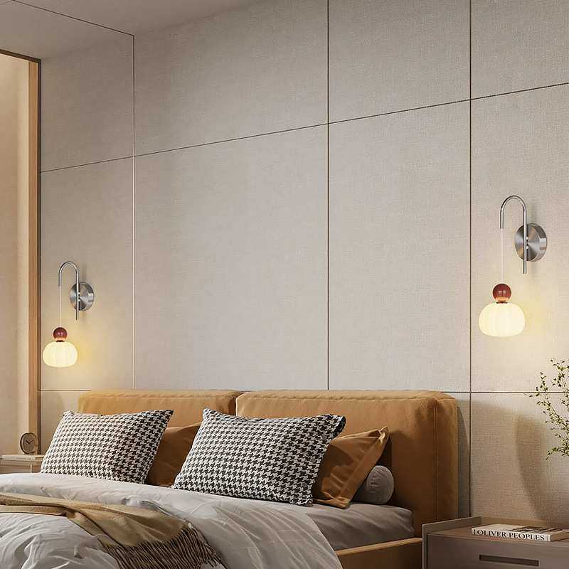 奶油风床头壁灯中古创意蛋壳南瓜全光谱客厅卧室背景墙灯具饰中山