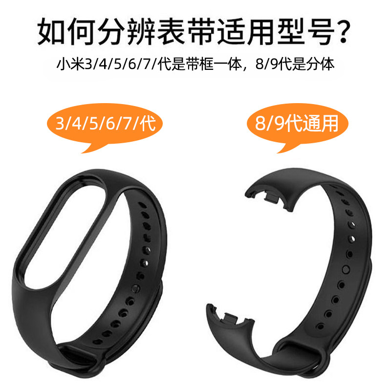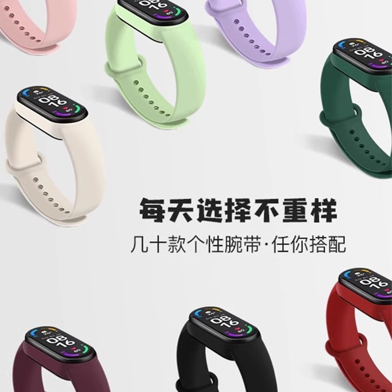 适用小米手环单色硅胶10/9/8/7/6/5/4/3腕带液态硅胶NFC九八七六五四三代时尚运动智能男女非原装替换带卡通