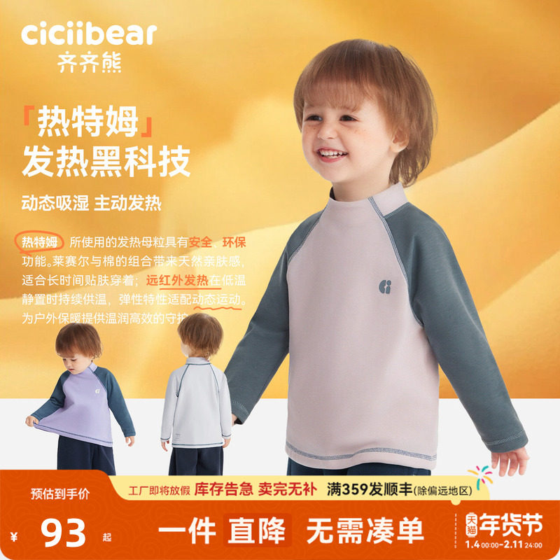 齐齐熊秋冬款男童热特姆运动T恤