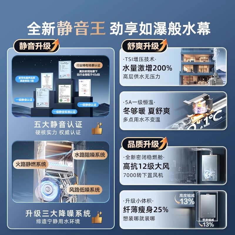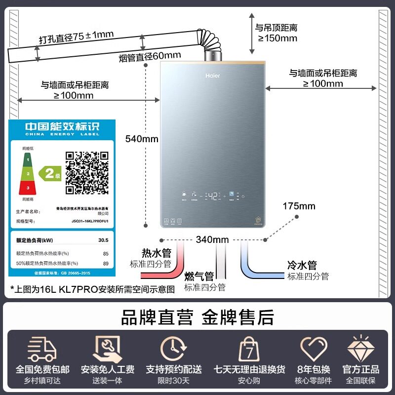 [KL7升级]海尔静音王燃气热水器KL7PRO增压恒温天然气水伺服家用