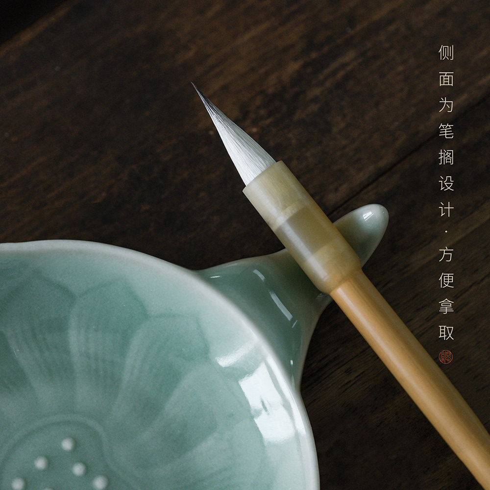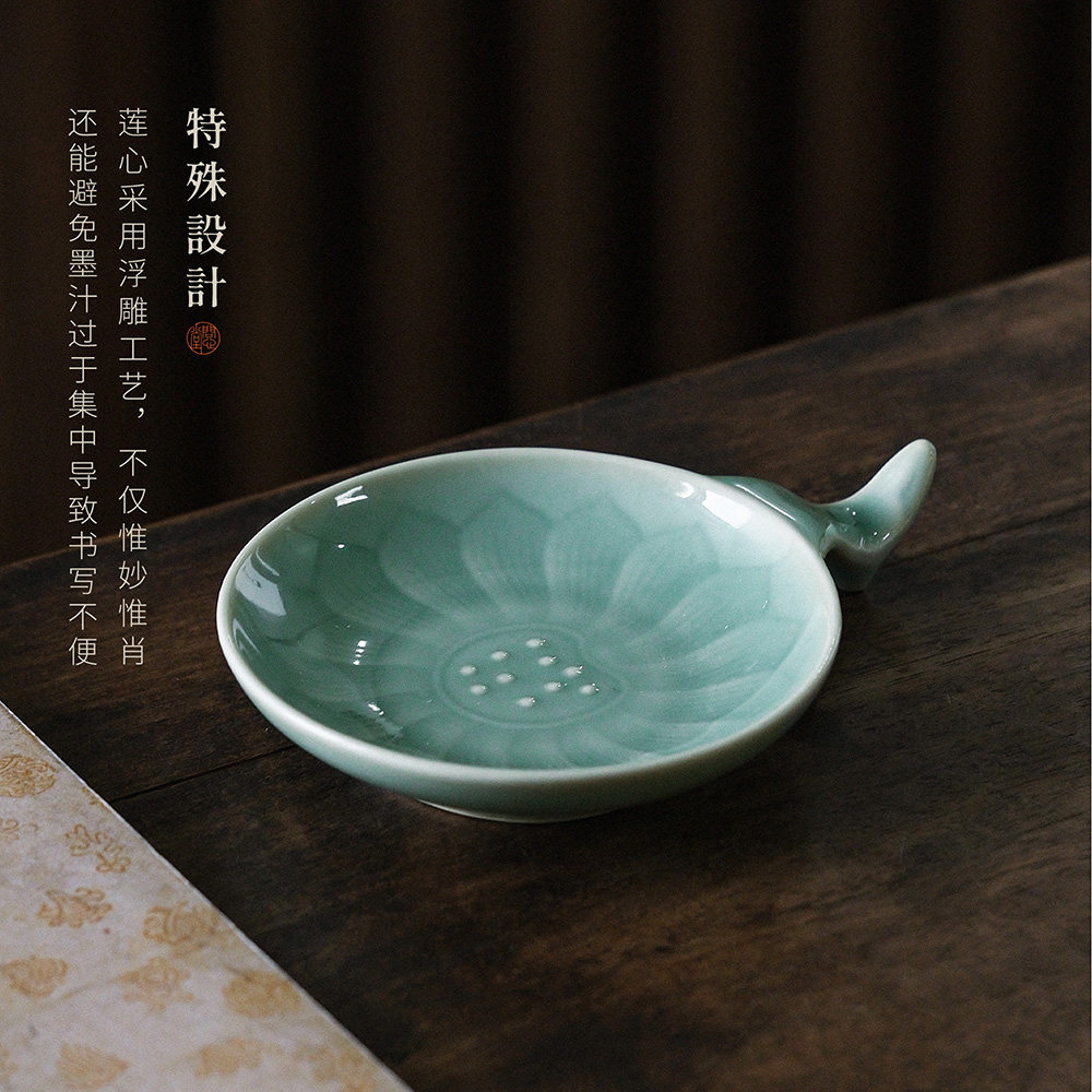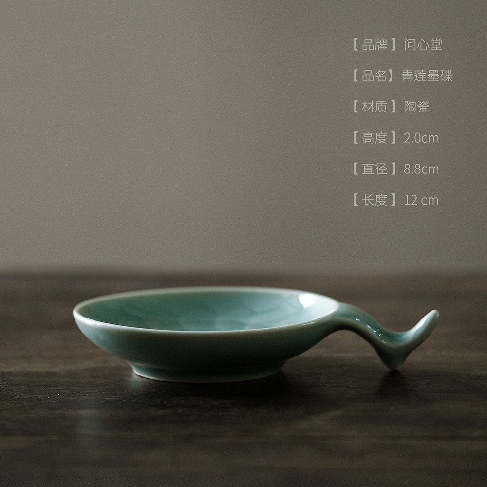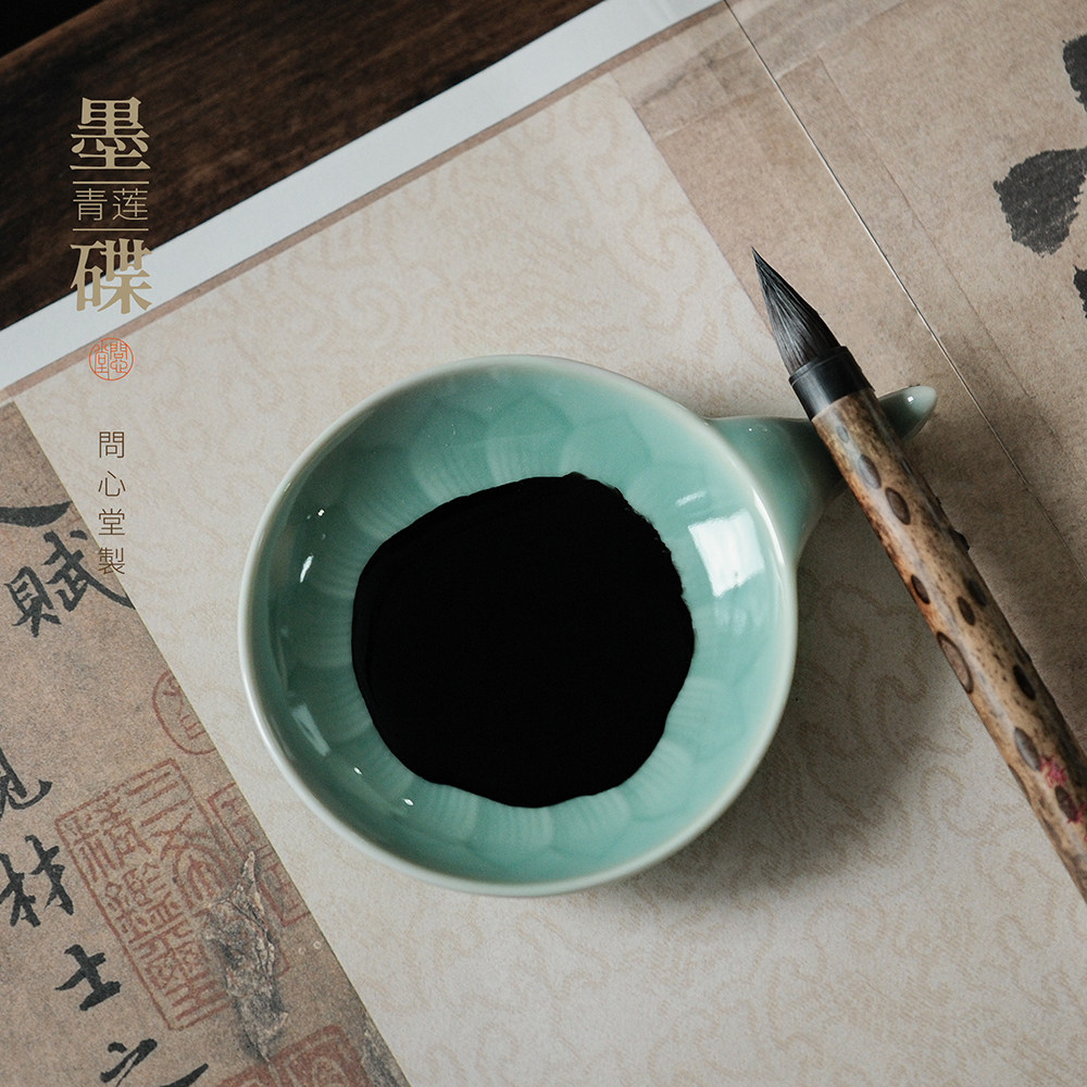 问心堂青莲陶瓷墨碟墨盒无盖墨碟国画调色盘带笔架笔搁墨汁收纳龙泉小楷专用墨碟文房四宝书法用品国画工具