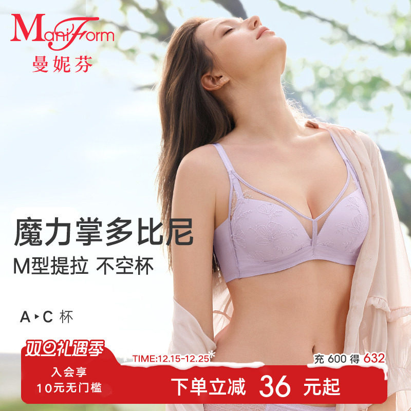 魔力掌多比尼|曼妮芬舒适聚拢显大无钢圈蕾丝文胸性感女士内衣