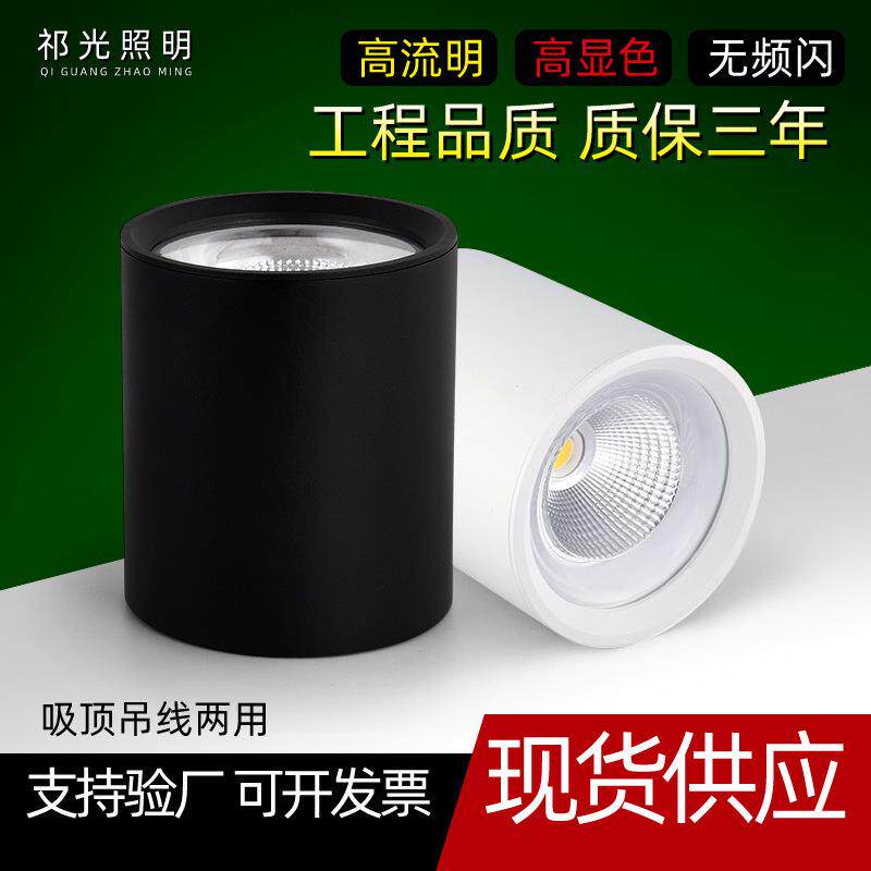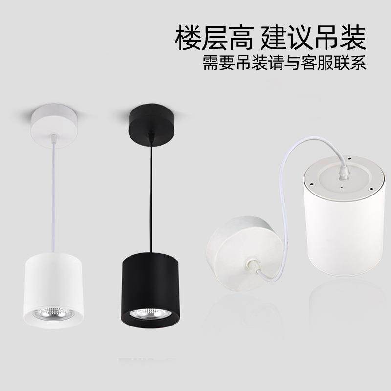 LED明装筒灯防眩COB免开孔射灯吸顶筒灯展厅酒店楼道商用吊线筒灯