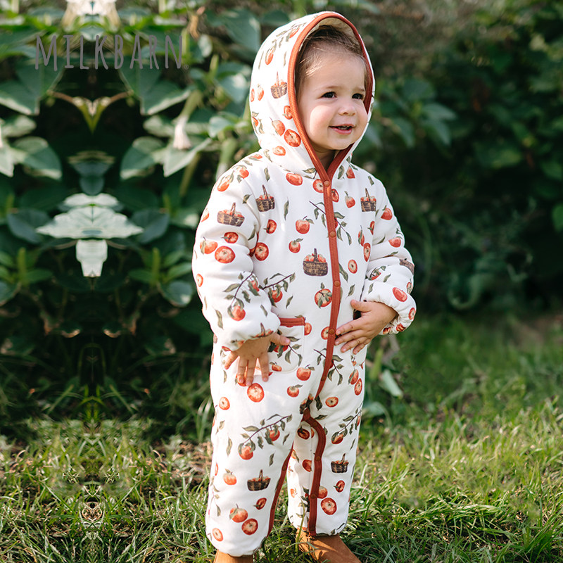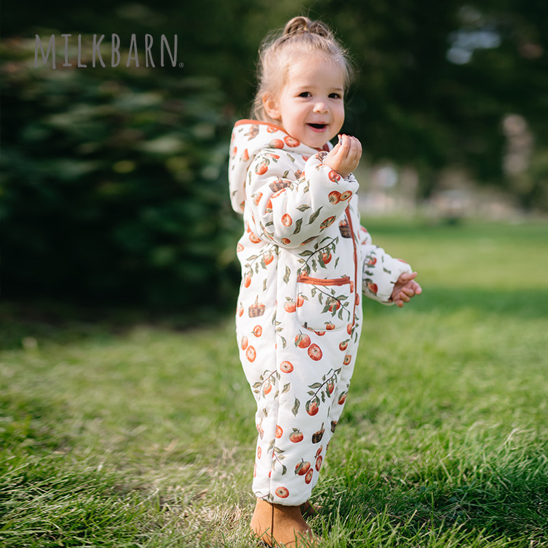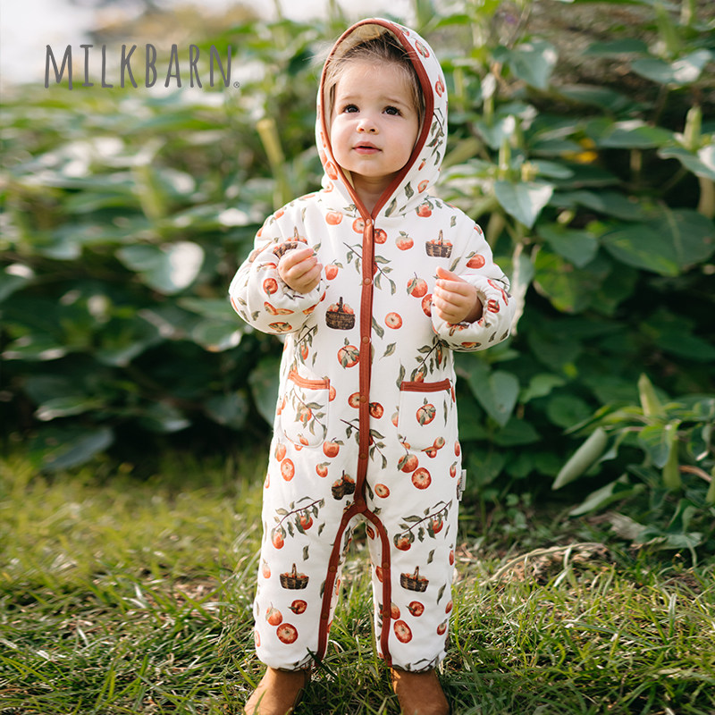 Milkbarn秋冬新品婴幼儿夹棉连帽连体衣宝宝哈衣爬服加厚保暖