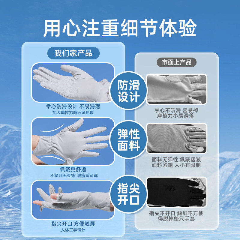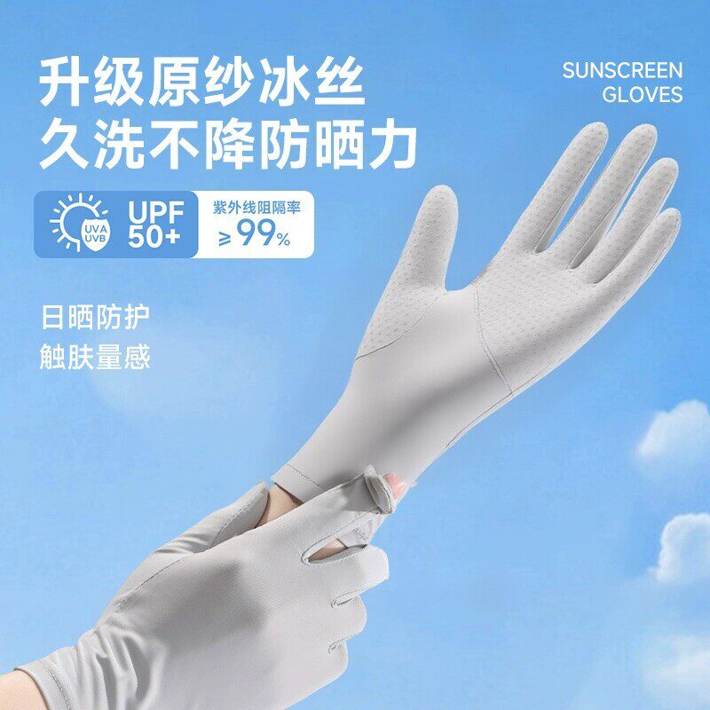 防晒手套女防紫外线薄款2026新款夏季冰丝露指男骑行开车电动专用