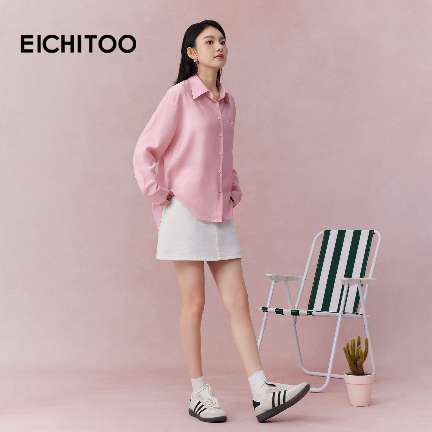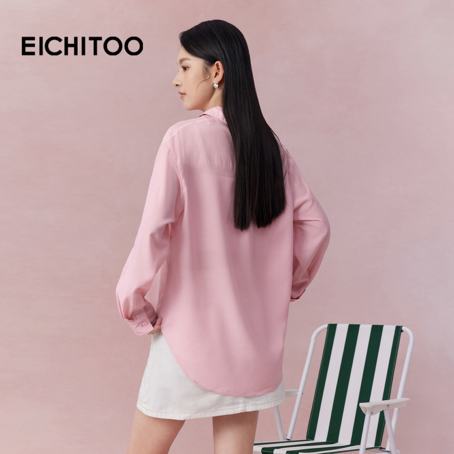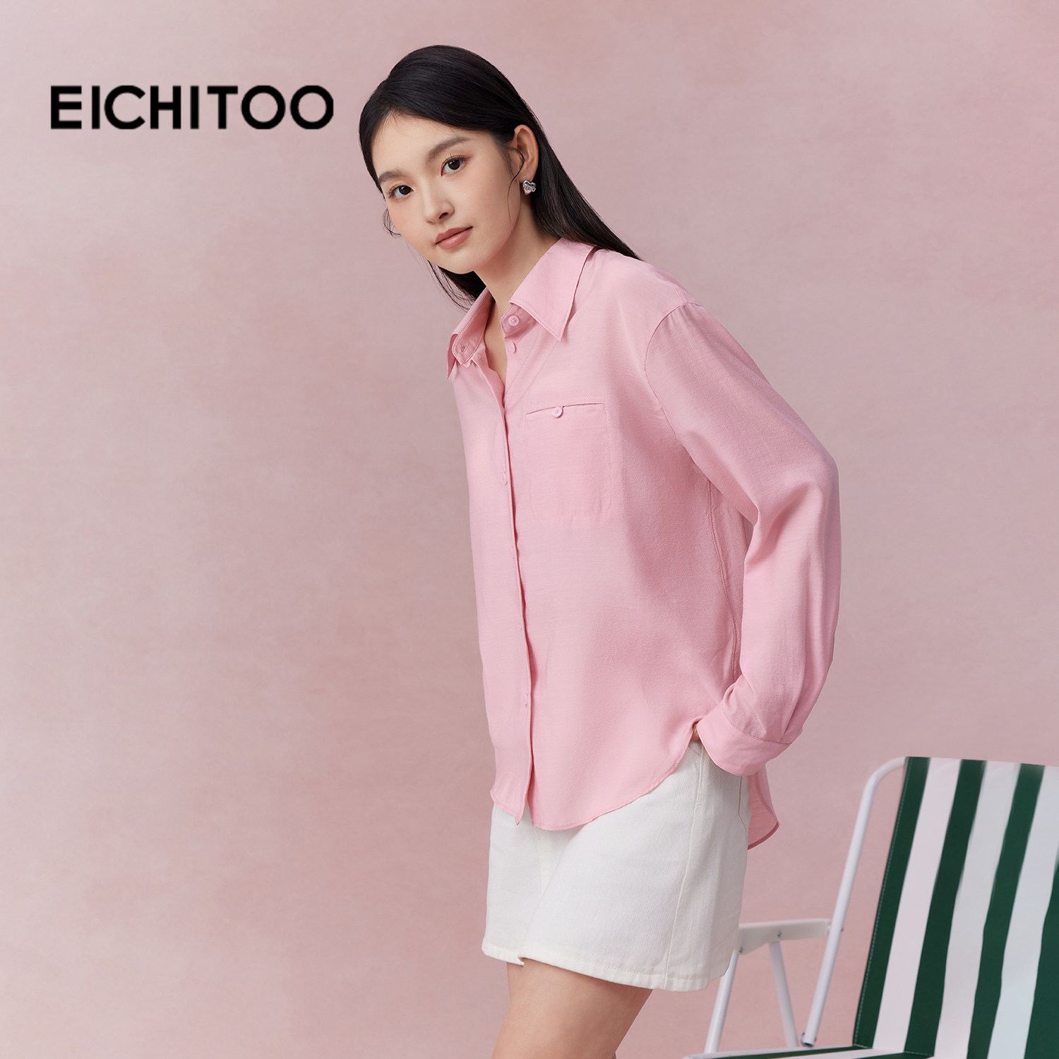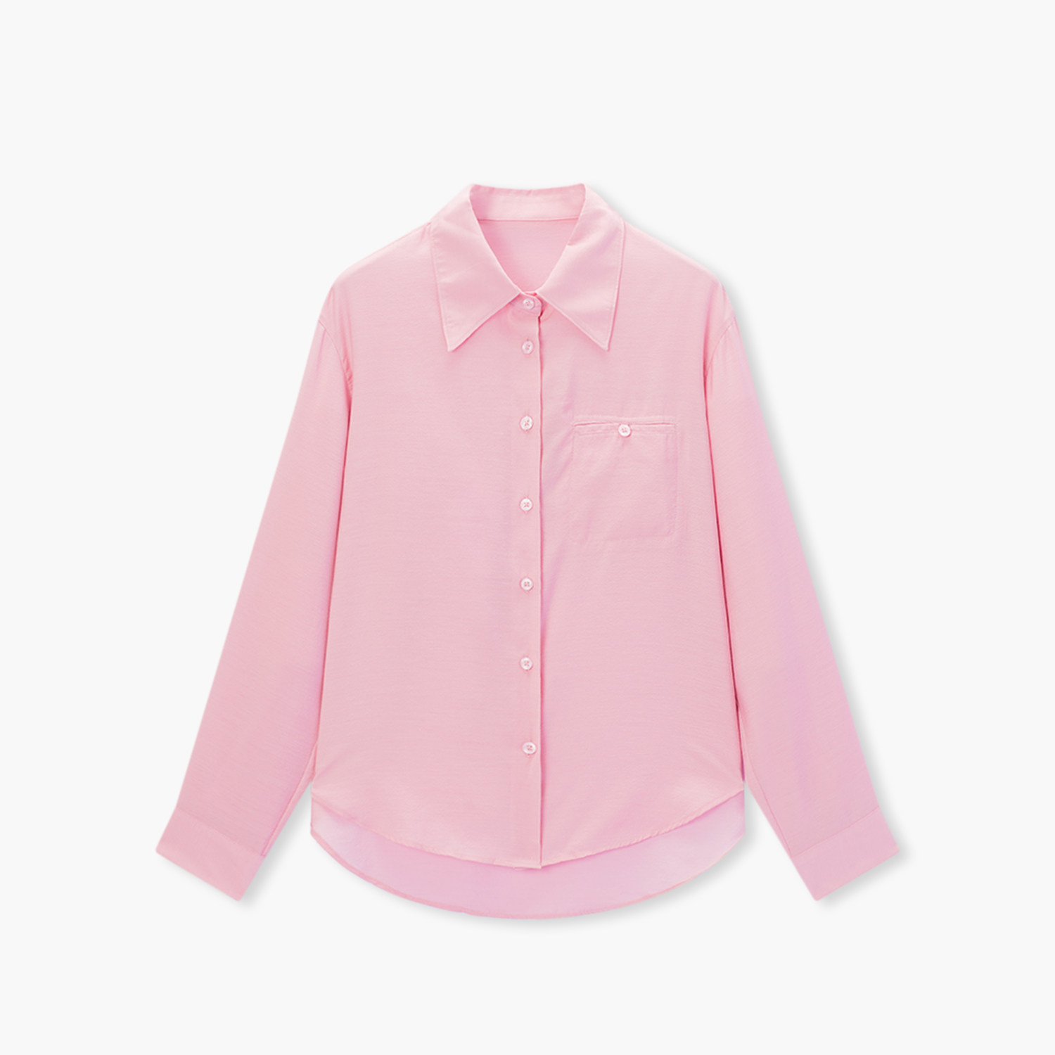 爱居兔粉色翻领长袖衬衫女2026年夏季新款含醋酸轻薄宽松雪纺上衣