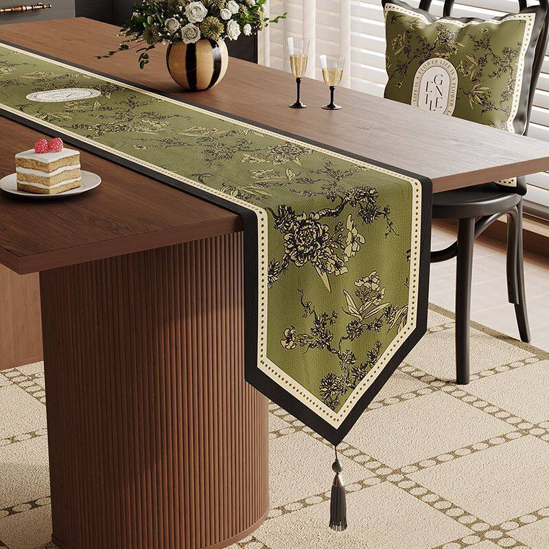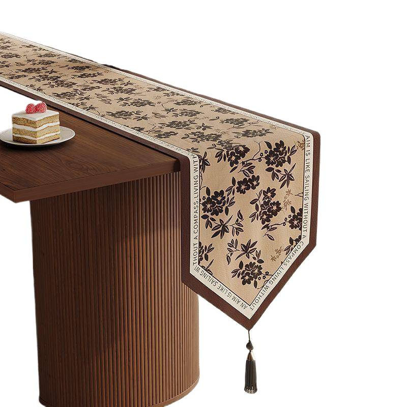 美式复古茶席桌旗轻奢高级感餐桌中间长条桌布茶几台面装饰盖布巾
