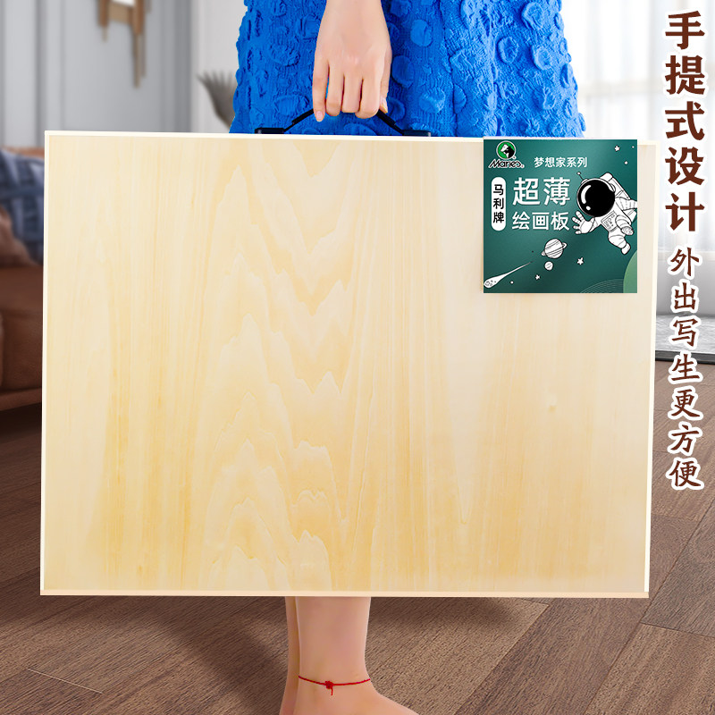 马利牌4K画板美术生专用素描工具套装手提木质四开素描板空心画画板实心8K儿童绘画写生画架工程制图绘图板