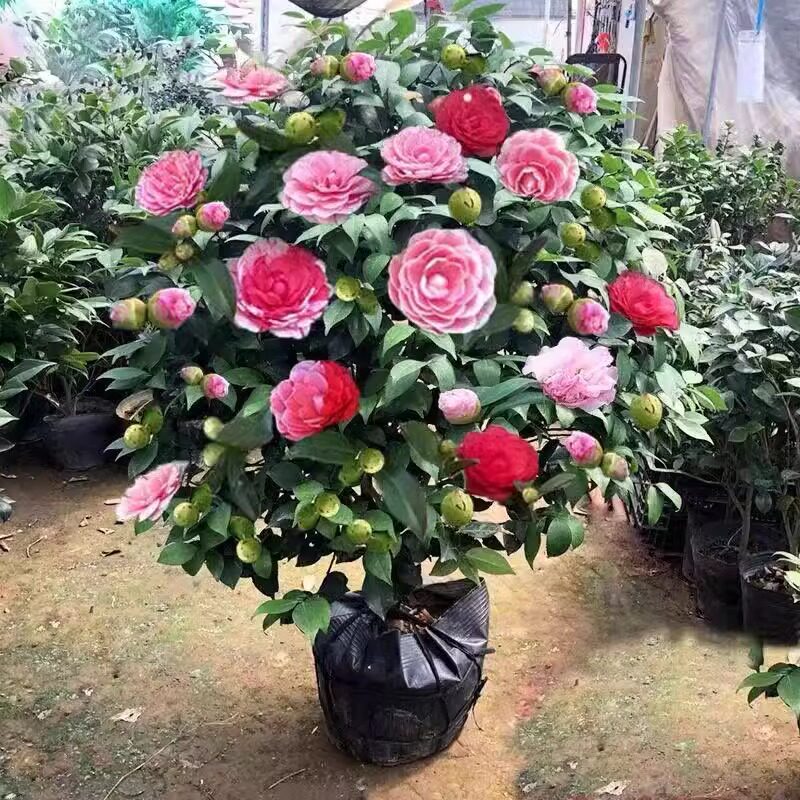 茶花树苗盆栽带花苞五色赤丹植物玫瑰花好养山茶花苗四季开花老桩