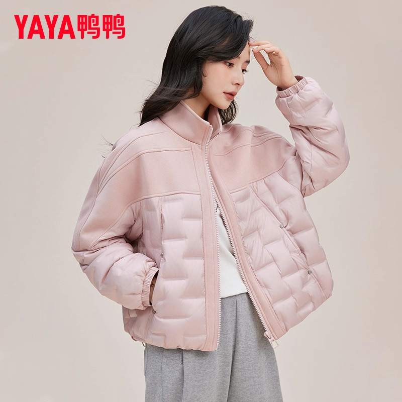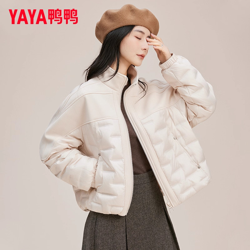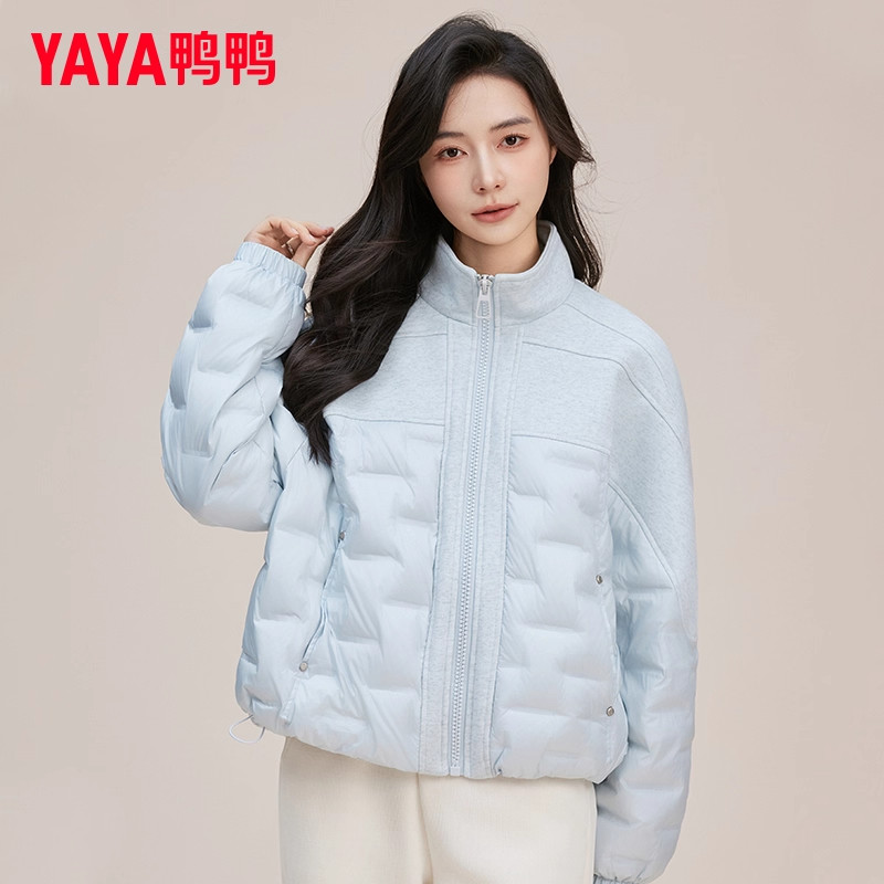 【鞠婧祎同款】鸭鸭2025年冬新款百搭短款女士纯色立领羽绒服外套