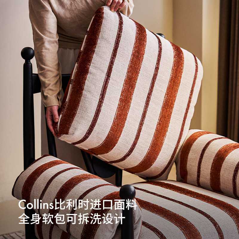 赤乌休闲椅实木高靠背家用中古轻奢单人沙发可替换拆洗(仅布套)