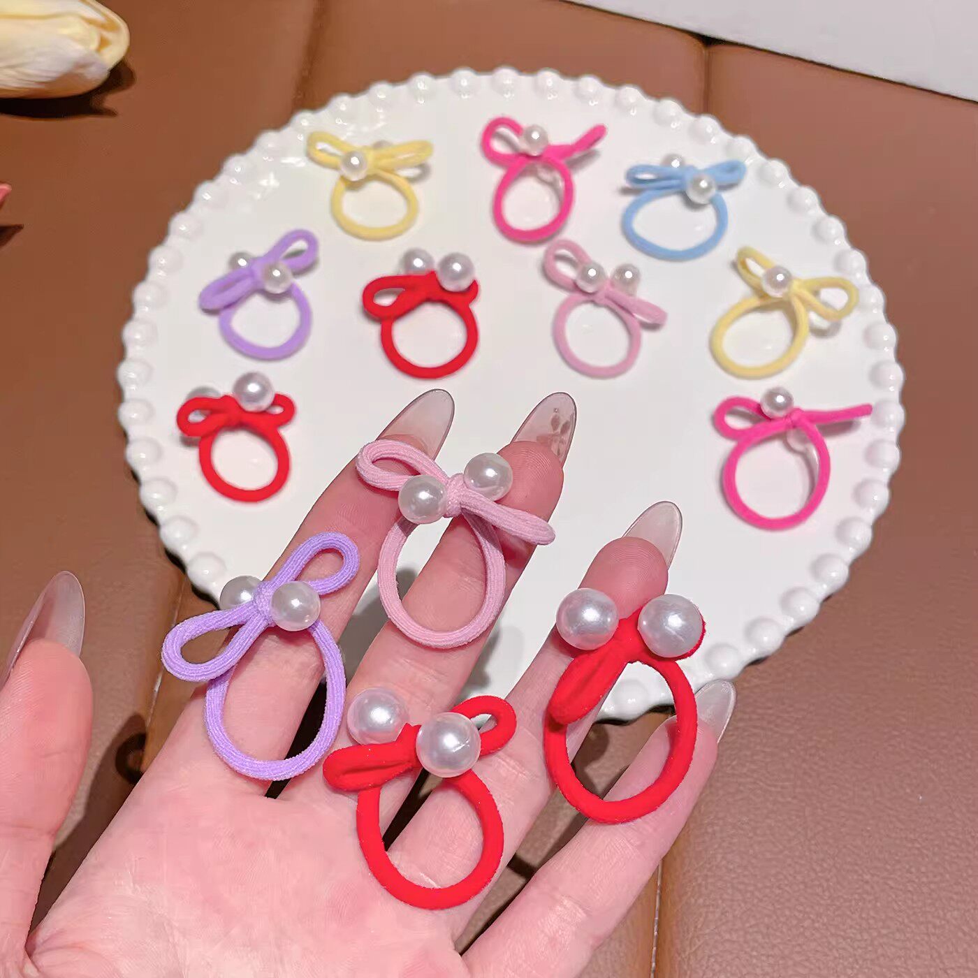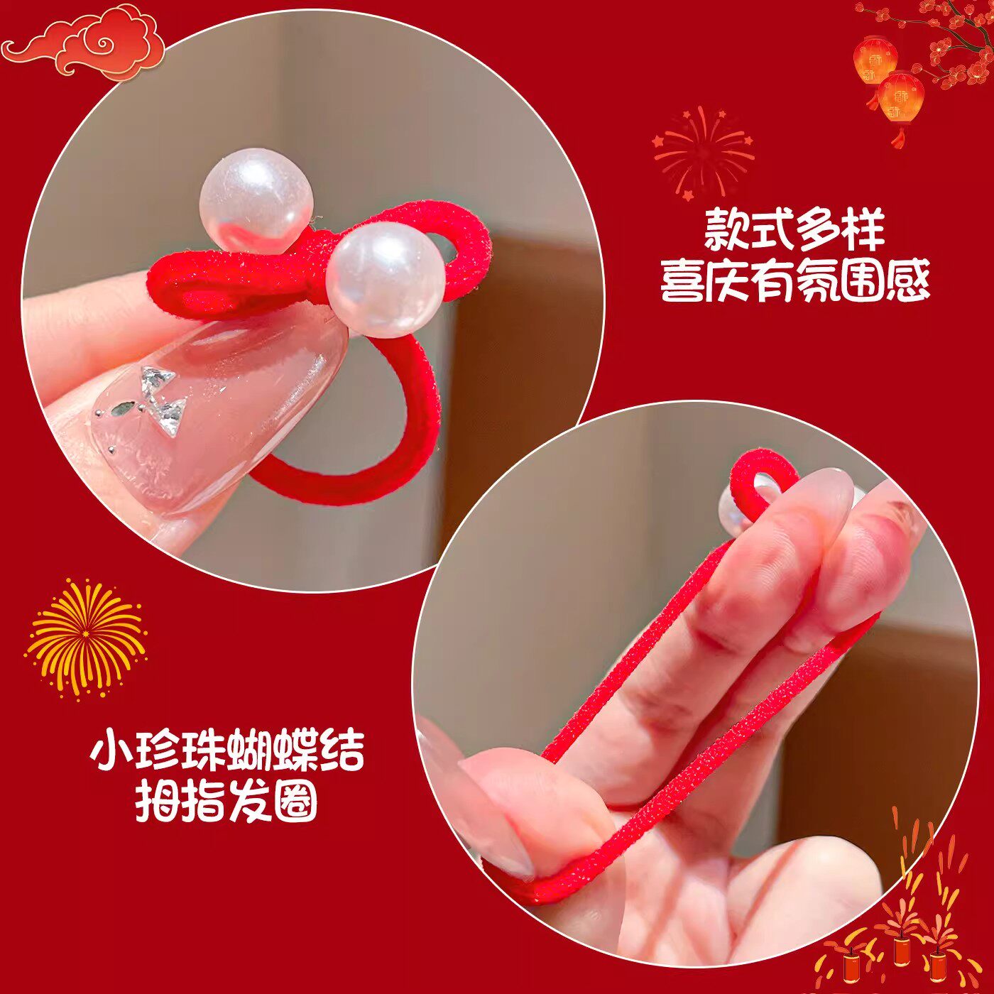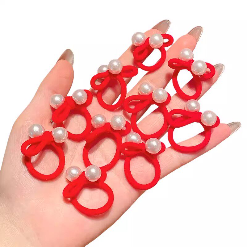 2026新年宝宝头绳简约珍珠蝴蝶结红发绳儿童过年可爱珠珠拇指皮筋