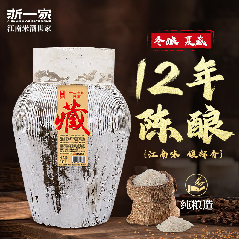 浙一家浙江坛装黄酒12年陈酿花雕酒20斤手工老酒冬酿米酒酿酒源头