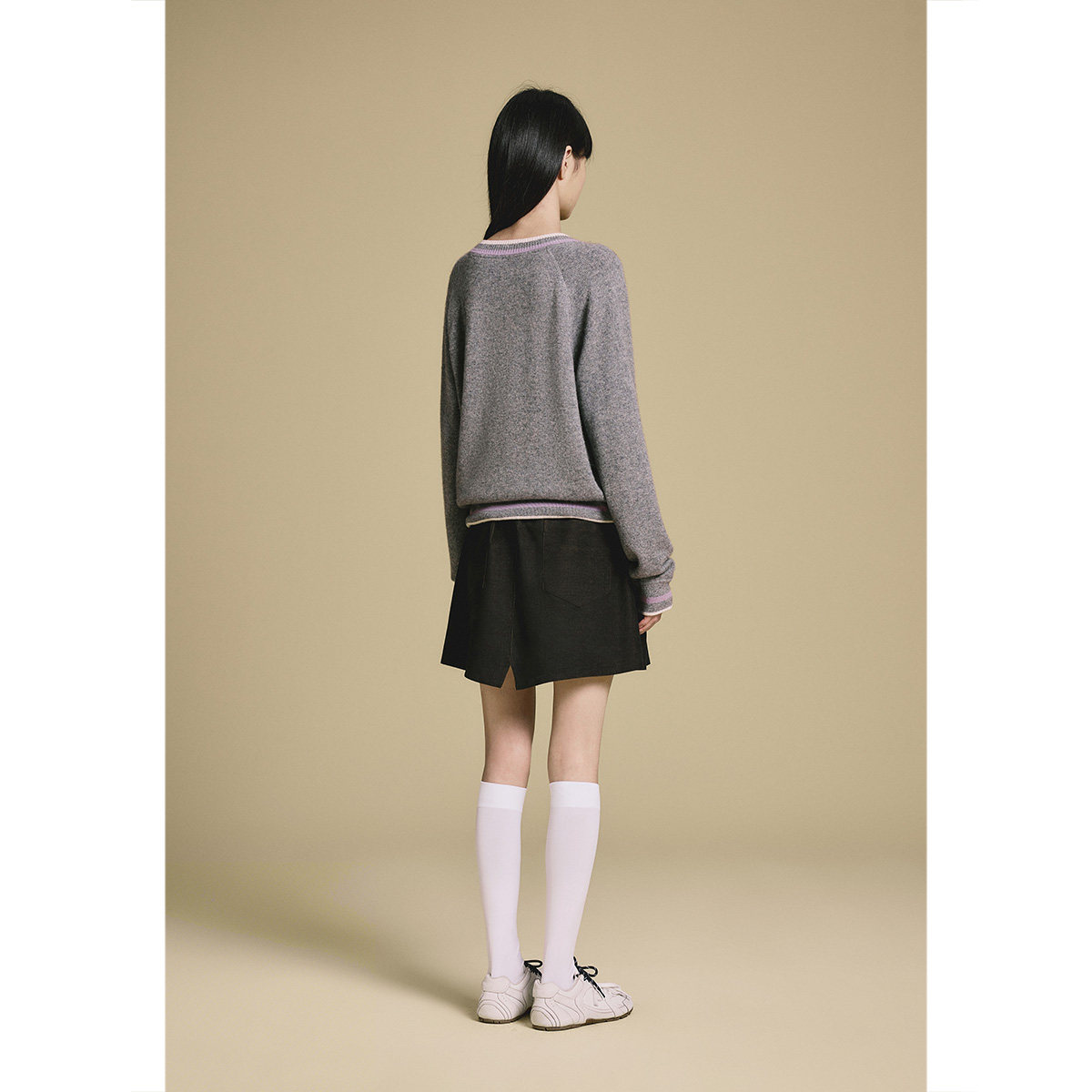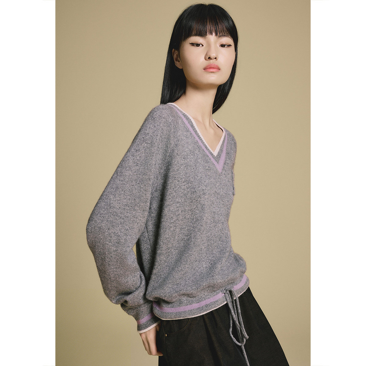 【山羊绒】PSALTER诗篇宽松版撞色V领套头羊绒衫2025冬款